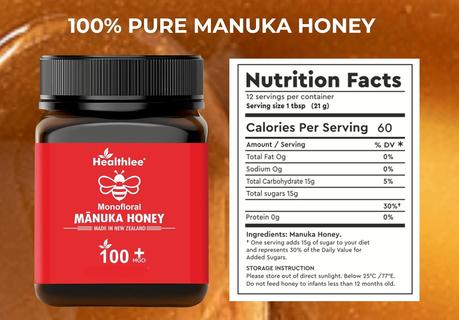 Use Manuka Honey for skin care : Apply a small amount of our manuka honey 100+ MGO or higher grade honey directly to the skin as a soothing, natural face mask. Its moisturizing and cleansing properties help promote a clear, healthy complexion
