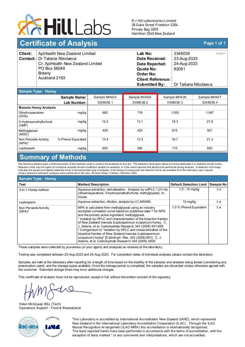 API Health UMF 10+ Manuka Honey is independently tested and certified to ensure its authenticity, quality, and purity.