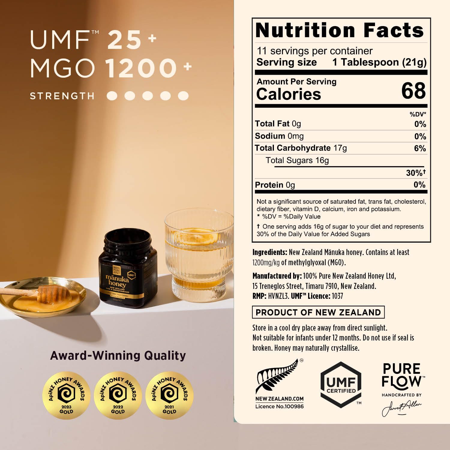UMF INDEPENDENT GUARANTEE – as a member of the UMF Honey Association (Unique Mānuka Factor), our UMF quality mark is an added guarantee that our honey has been independently certified for purity, freshness, shelf life and packed in New Zealand.