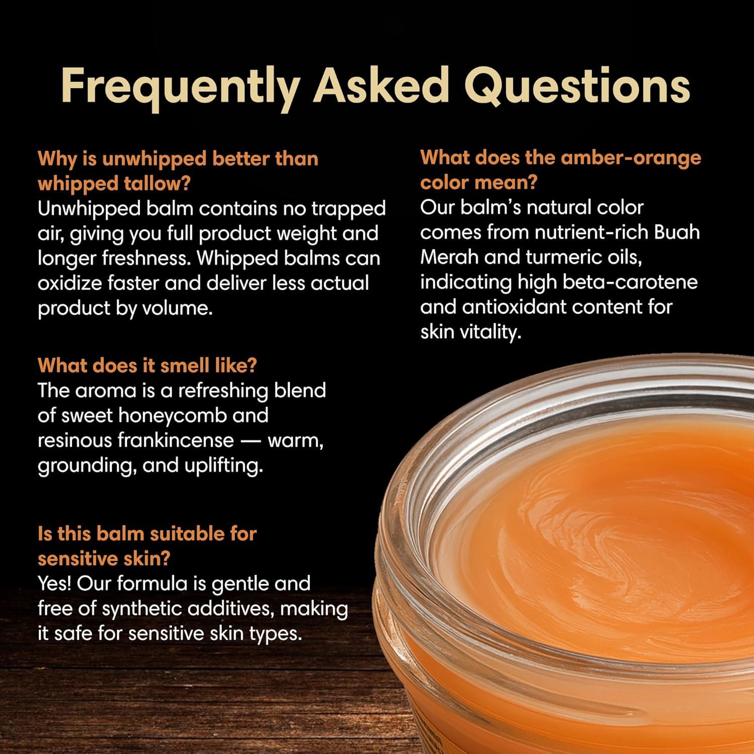 HANDMADE WITH GRASS-FED PURITY — Crafted in small batches with grass-fed beef tallow, beeswax, and frankincense oil, this unwhipped balm is free from parabens, GMOs, and unwanted air that can expose the balm to oxidation and pathogens — ensuring a fresher, safer, and more valuable tallow experience for both men and women.