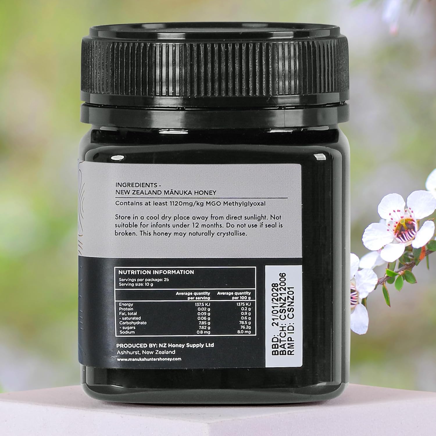 Manuka Hunters UMF 24+/MGO 1120+ Certified New Zealand Manuka Honey – 100% Pure Natural Sweetener – Gluten, Dairy Free – Ideal for Tea, Coffee, Smoothies, and Baking – Sustainable – 8.8oz/250g Jar