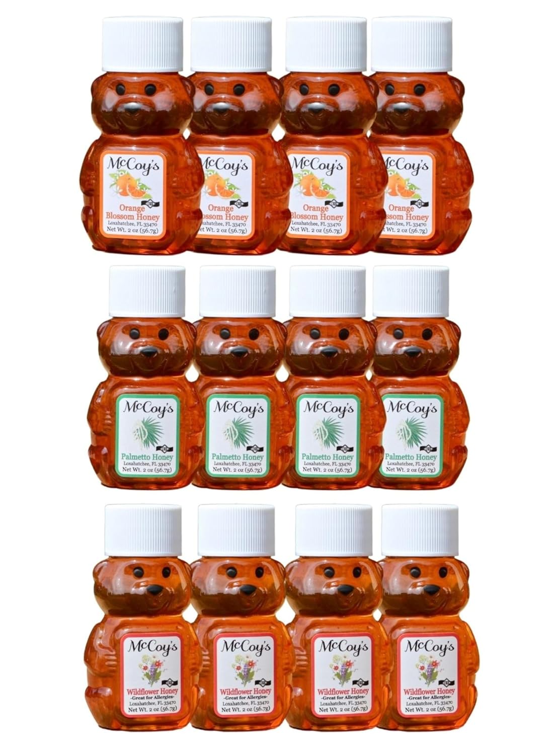 12 2oz Mini Honey Bear Variety Pack – Orange Blossom, Palmetto & Wildflower