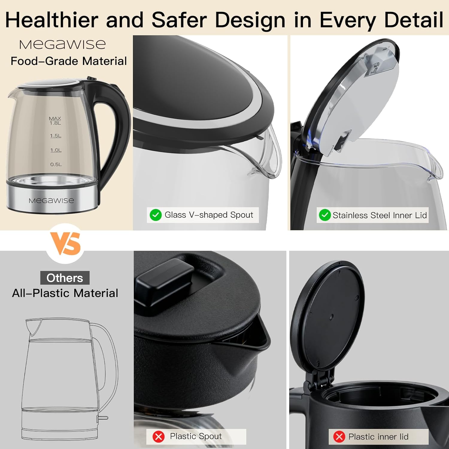 1.8L Large Capacity: Perfect for boiling up to 1.8 liters of water, making it ideal for families and gatherings.