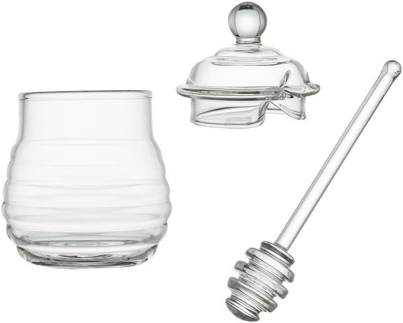 Honey pot is made of classy high borosilicate glass-Non-toxic,Tasteless,Pretty, Transparent.9 ounce great capacity