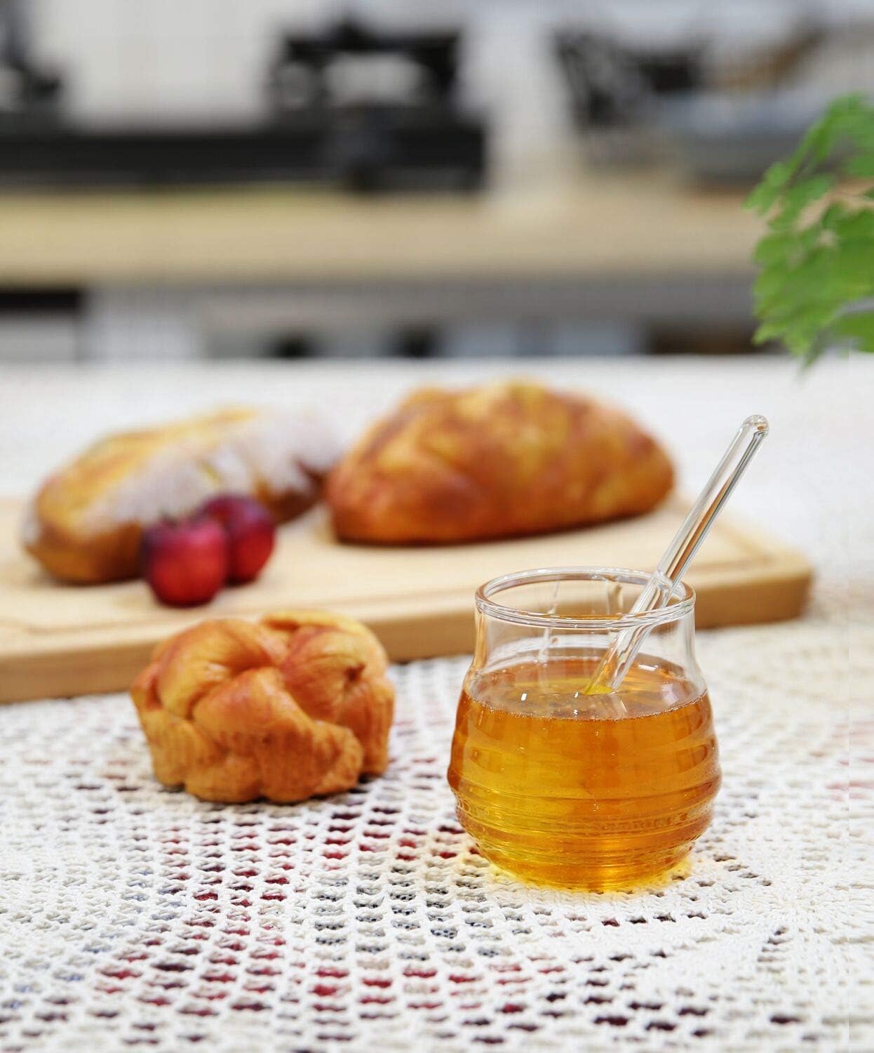 Features ✔ The honey jar with dipper is the perfect addition to any kitchen ✔ Easy to add honey to hot beverages or bread ✔ There is an opening at the side, this honey keeper is not airtight ✔Makes a great gift for new homeowners, tea lovers, or anyone who enjoys cooking