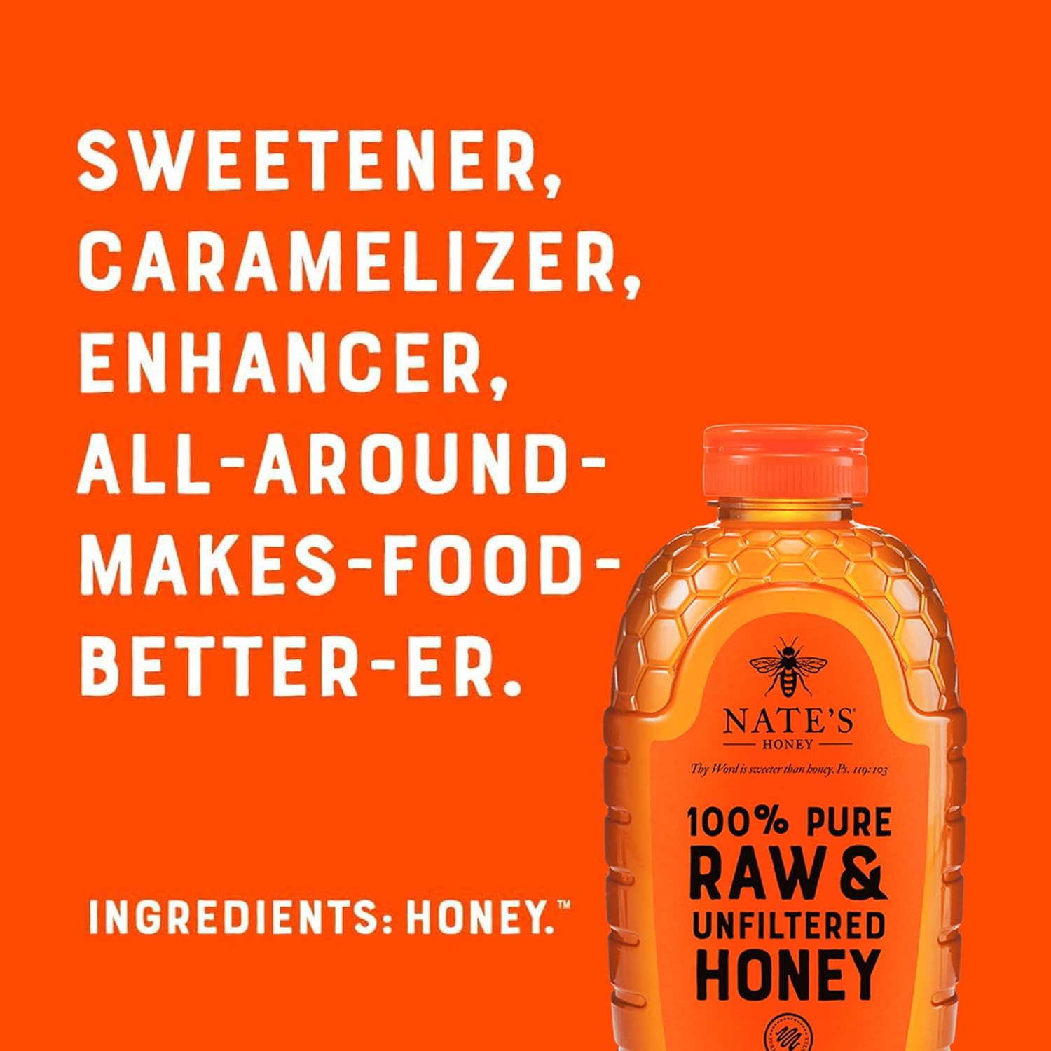 Nate’s 100% Pure, Raw & Unfiltered Honey is a sweetener as nature intended, with one ingredient: Honey. All we add is the bottle.