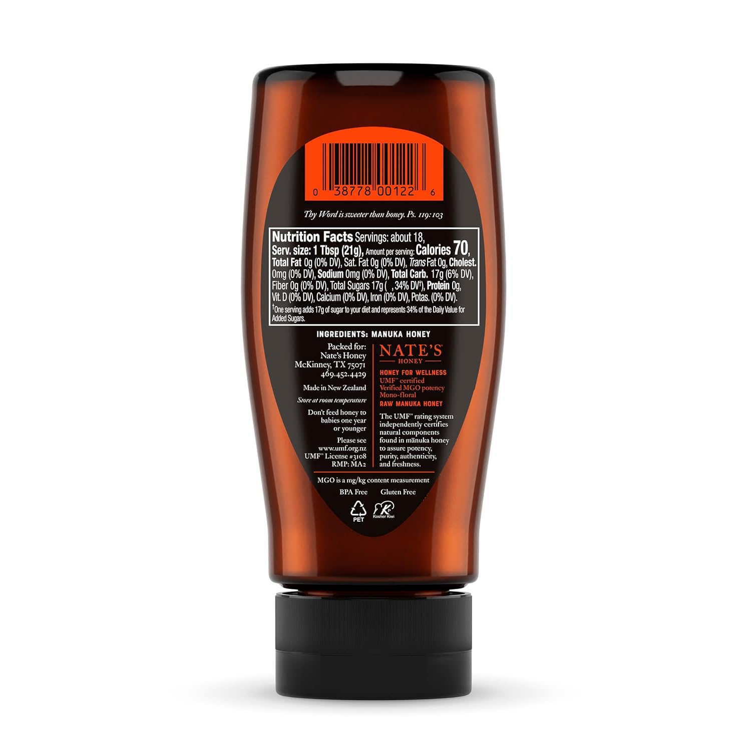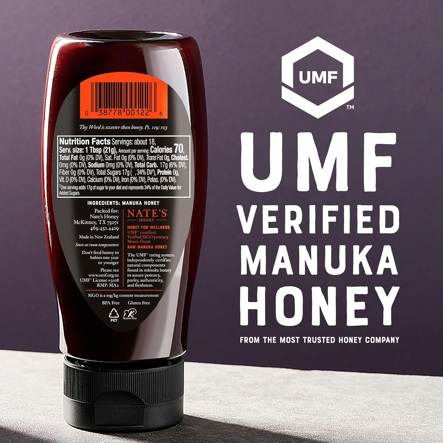 UNCOMPROMISING PURITY: 100% pure monofloral honey, rigorously tested to meet our strict purity standards and UMF-certified, guaranteeing the highest quality Manuka honey.