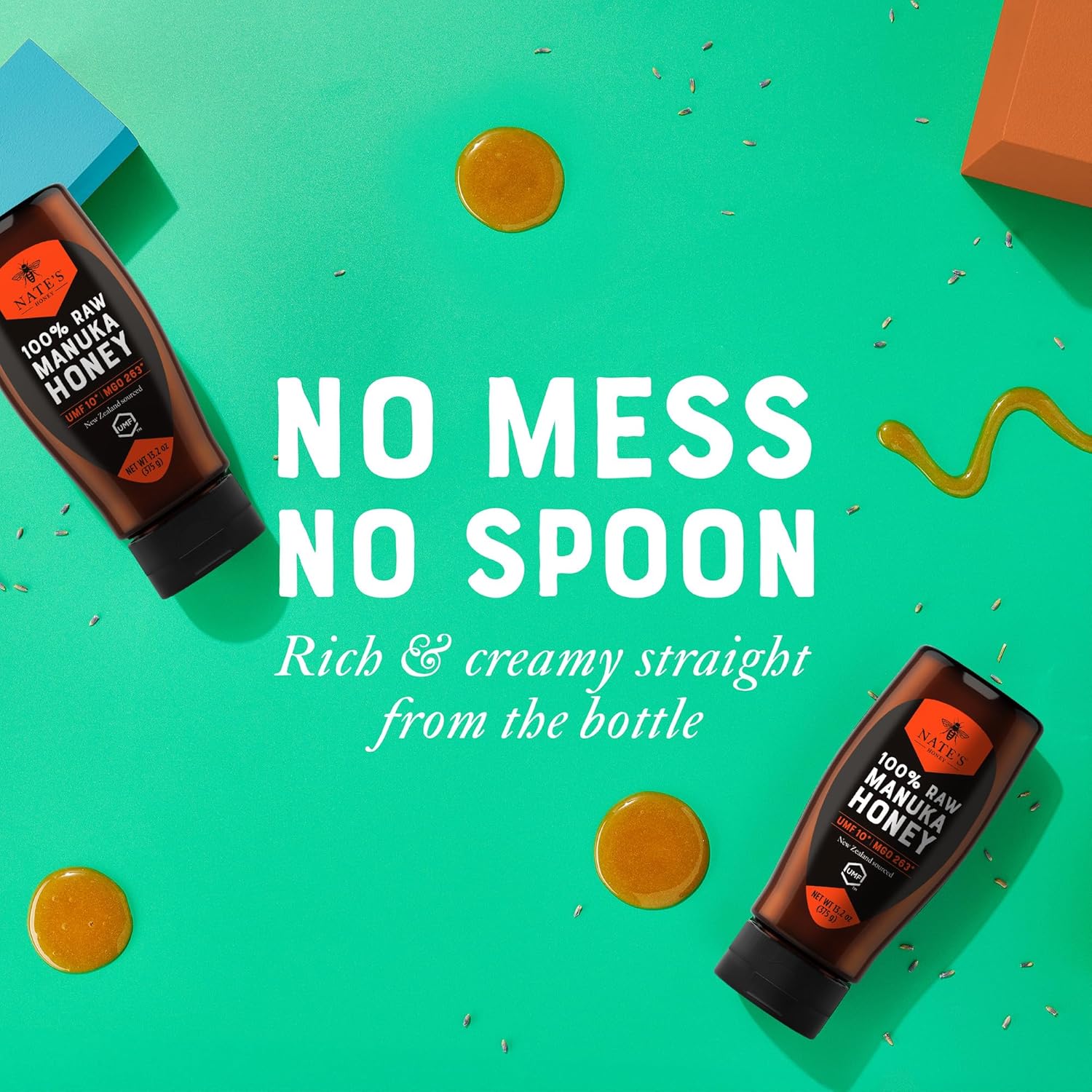 Experience the unparalleled benefits of Nature Nate’s Raw Manuka Honey, sourced directly from the pristine landscapes of New Zealand. This 100% pure organic honey is raw and unfiltered, ensuring you receive all the natural honey benefits without having to compromise. Independently certified by the UMF Honey Association (UMFHA), our Manuka honey guarantees potency, authenticity, freshness, and purity, boasting a UMF rating of 10+ and an MGO level of 263+. Incorporating this superfood honey into your daily wellness regimen is effortless. Whether stirred into your favorite tea, or drizzled over breakfast, Nature Nate’s Manuka Honey supports digestive balance, acts as a natural immune booster and probiotic honey supplement to fuel your active lifestyle. Our thoughtfully designed squeeze bottle offers precise, mess-free servings with no need for a spoon, ensuring you can savor every drop with convenience and ease. At Nature Nate’s, we are committed to delivering honey that meets the highest standards of purity and quality. Explore our range of Manuka honey offerings, each characterized by a rich, creamy, and smooth texture, tailored to complement your wellness journey. Pure trust. Perfect Manuka honey. From the honey you trust to the Manuka you’ll love.