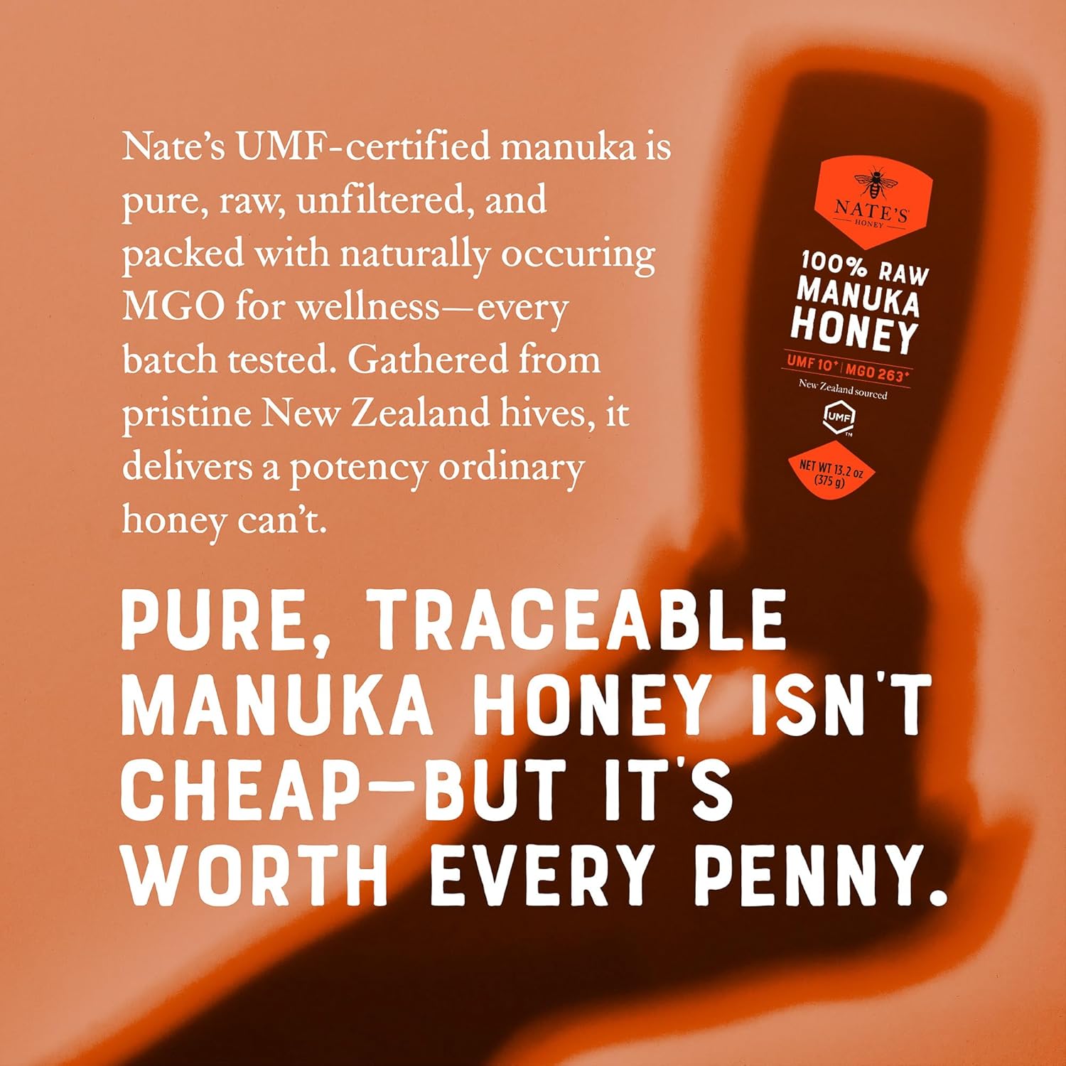 PREMIUM MANUKA HONEY: Sourced exclusively from New Zealand, Nature Nate’s Manuka Honey is raw, unfiltered, and independently certified for potency, authenticity, freshness, and purity. With an MGO rating of 263+, this 100% pure, 100% natural honey offers a rich, earthy flavor and thick texture.