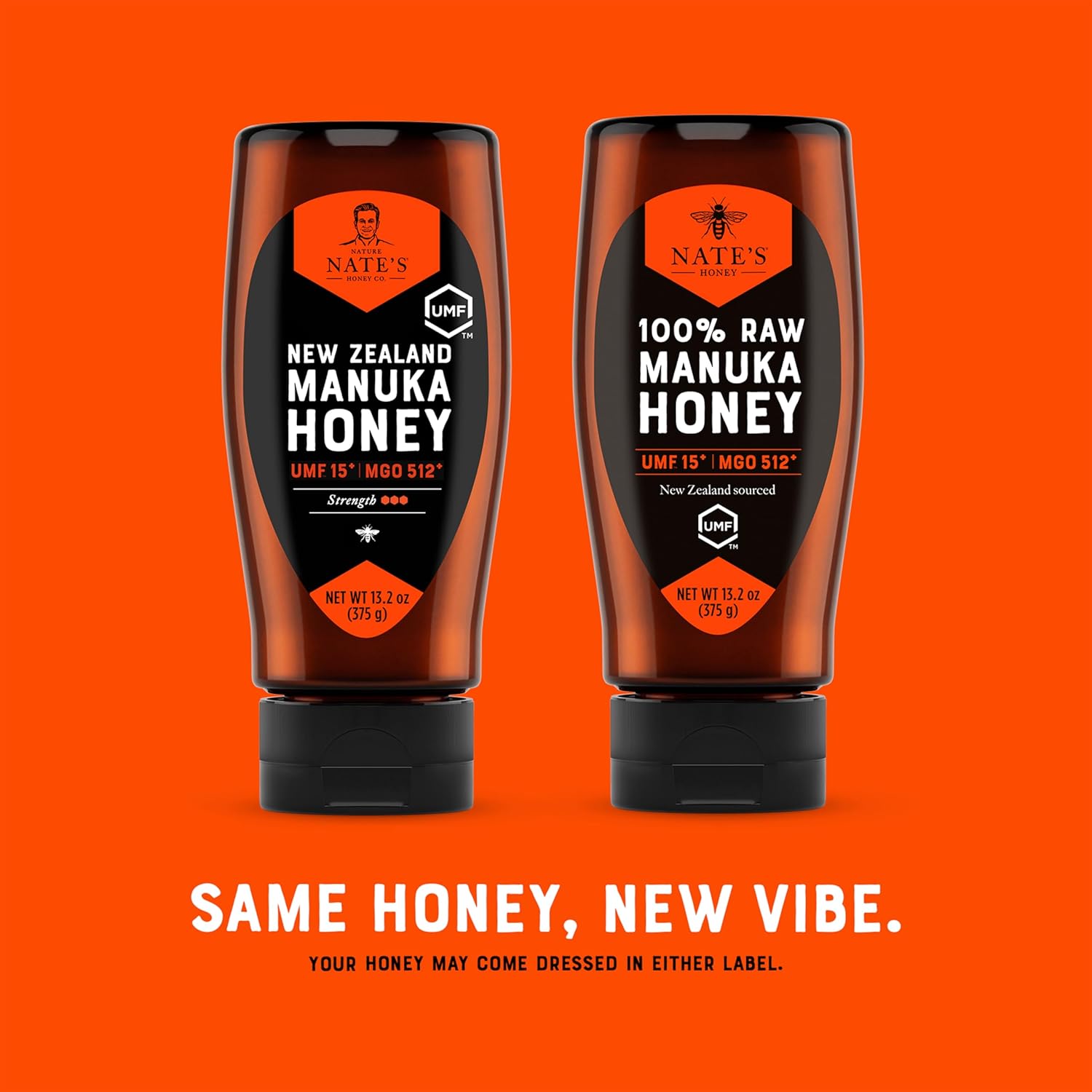 Experience the unparalleled benefits of Nature Nate’s Raw Manuka Honey, sourced directly from the pristine landscapes of New Zealand. This 100% pure organic honey is raw and unfiltered, ensuring you receive all the natural honey benefits without having to compromise. Independently certified by the UMF Honey Association (UMFHA), our high strength Manuka honey guarantees potency, authenticity, freshness, and purity, boasting a UMF rating of 15+ and an MGO level of 512+. Incorporating this superfood honey into your daily wellness regimen is effortless. Whether stirred into your favorite tea, or drizzled over breakfast, Nature Nate’s Manuka Honey supports digestive balance and acts as a natural immune booster and probiotic honey supplement to fuel your active lifestyle, providing targeted well-being for your health and beauty routines. This high strength Manuka provides the most benefits of all Nate’s Manuka honeys. If you are feeling low or needing a boost, try a spoonful straight up! Our thoughtfully designed squeeze bottle offers precise, mess-free servings with no need for a spoon, ensuring you can savor every drop with convenience and ease. At Nature Nate’s, we are committed to delivering honey that meets the highest standards of purity and quality. Explore our range of Manuka honey offerings, each characterized by a rich, creamy, and smooth texture, tailored to complement your wellness journey. Pure trust. Perfect Manuka honey. From the honey you trust to the Manuka you’ll love.