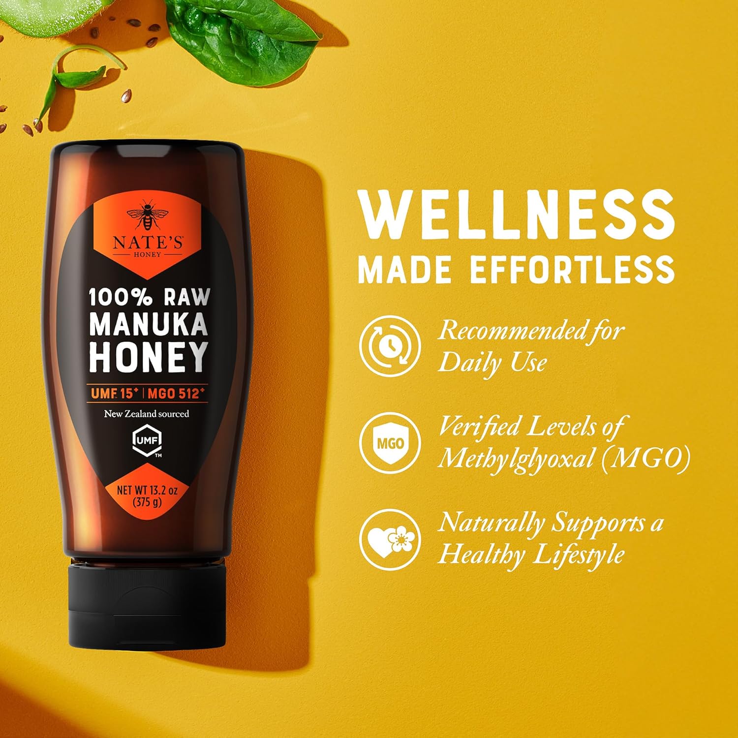 PREMIUM MANUKA HONEY: Sourced exclusively from New Zealand, Nature Nate’s Manuka Honey is raw, unfiltered, and independently certified for potency, authenticity, freshness, and purity. With an MGO rating of 512+, this 100% pure, 100% natural honey offers a rich, earthy flavor and thick texture.