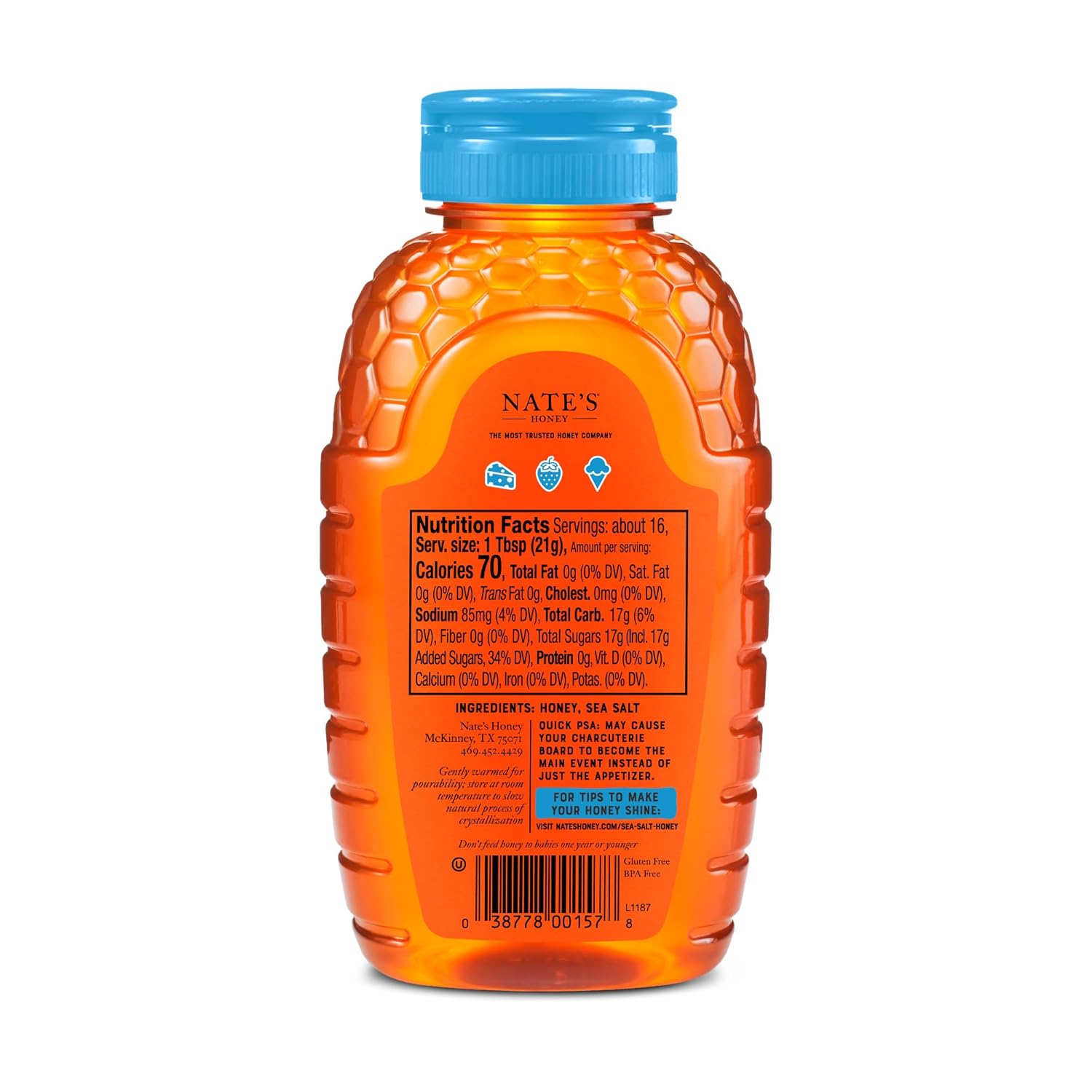 CRAFTED FOR EXCEPTIONAL TASTE: Nate’s Sea Salt Honey blends the exceptional taste of Nate’s honey with real sea salt, giving sweet & salty equal bragging rights; Two simple ingredients that create a taste as delicious as nature intended