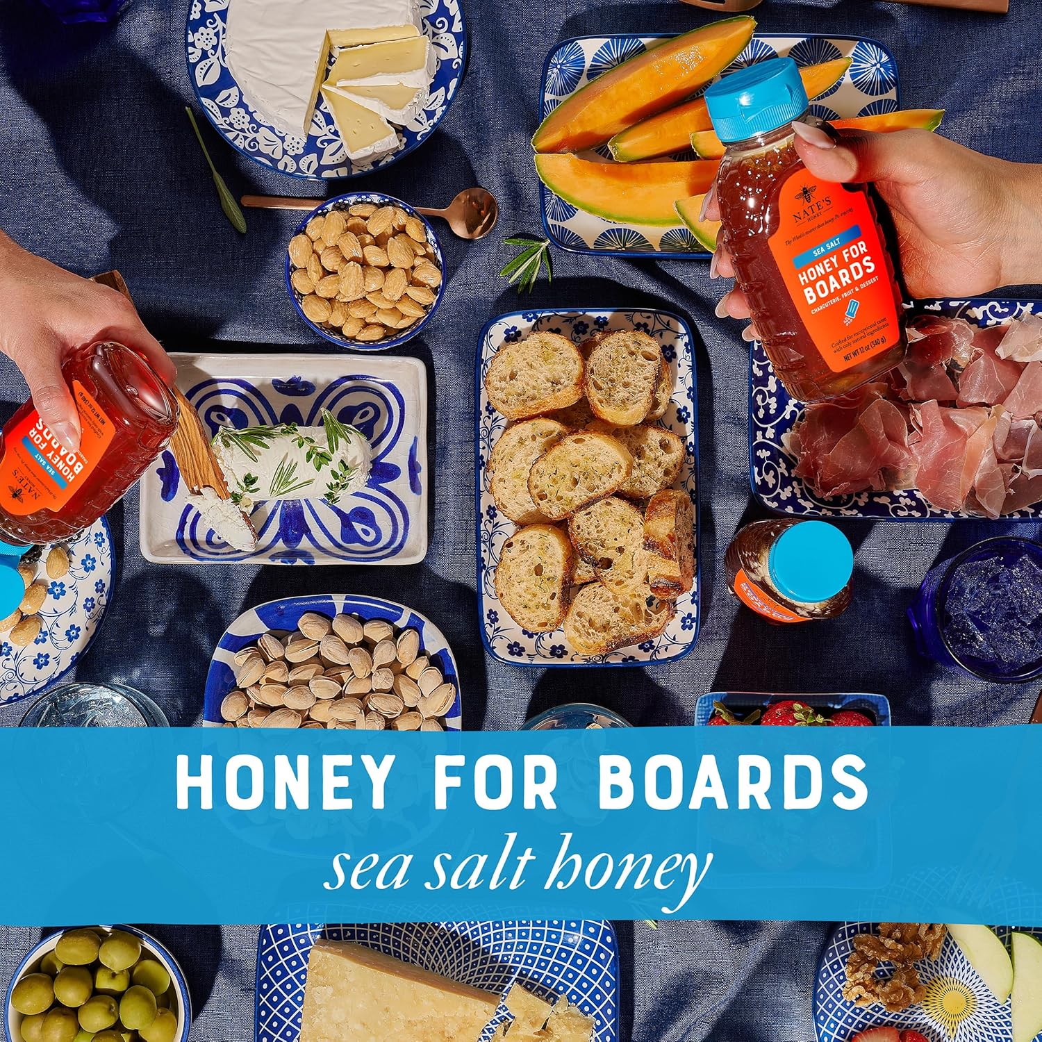 Nate’s Sea Salt Honey for Boards – Made with 100% Pure Honey and Real Sea Salt – for Charcuterie, Cheese, Fruit, and Dessert Boards – 12 oz Squeeze Bottle