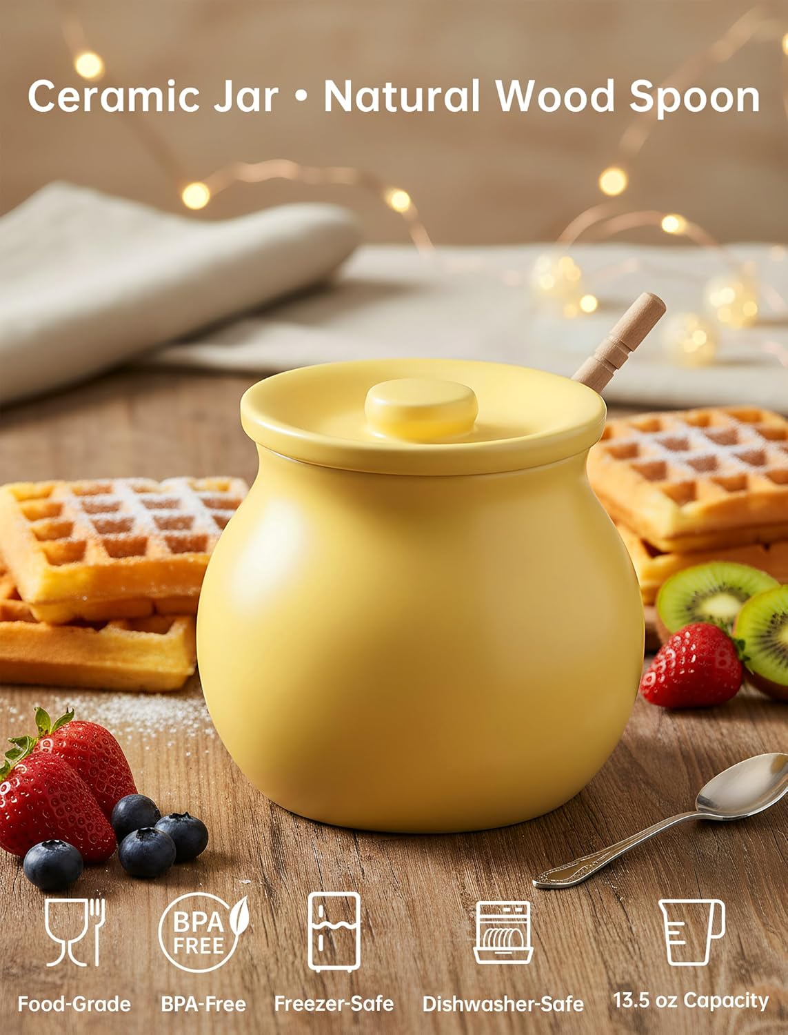 Large Capacity Design: The wide-mouth design allows for easy scooping without dripping. With a generous 13.5 oz capacity, it holds more honey, reduces refill frequency, and keeps it fresh and ready to use anytime.