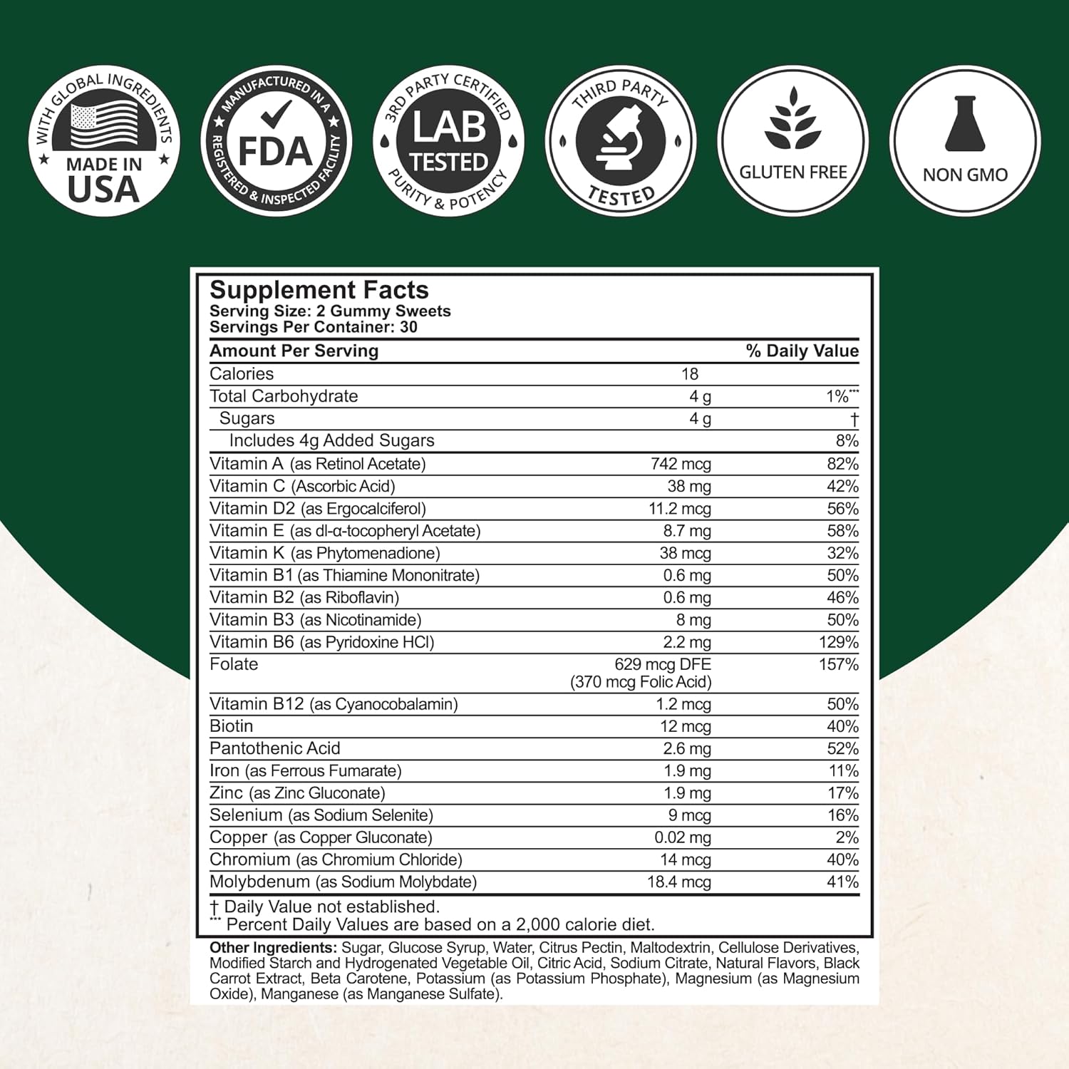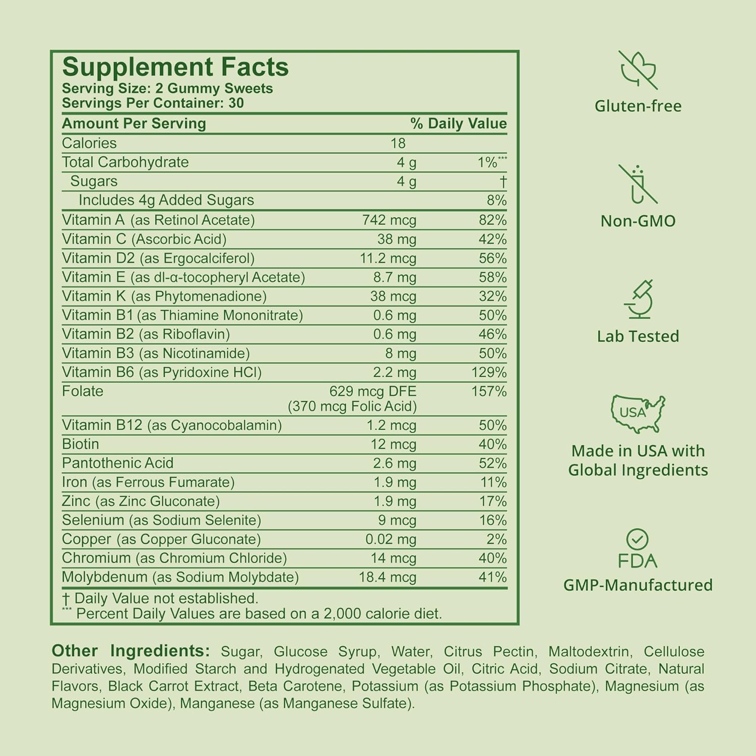 YEAR-ROUND IMMUNE SUPPORT FOR KIDS: No matter the season, help your child maintain strong immune health with a complete blend of 19 essential vitamins and minerals, including Vitamins C, D2, Zinc, Selenium, and more. With just 1-2 gummies a day, it’s an easy, tasty way to support daily immune defense, balanced nutrition, and healthy growth for kids ages 4+.