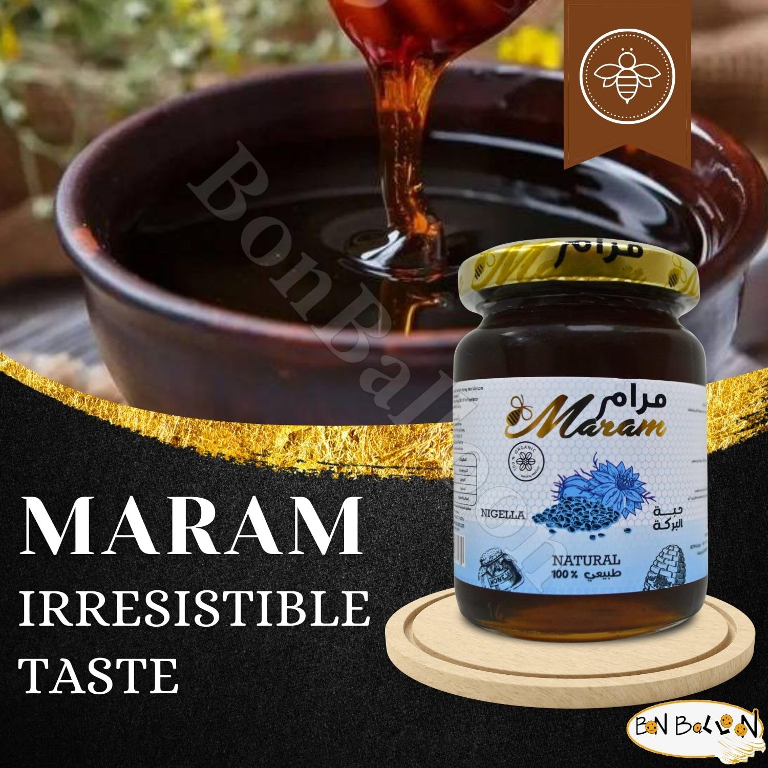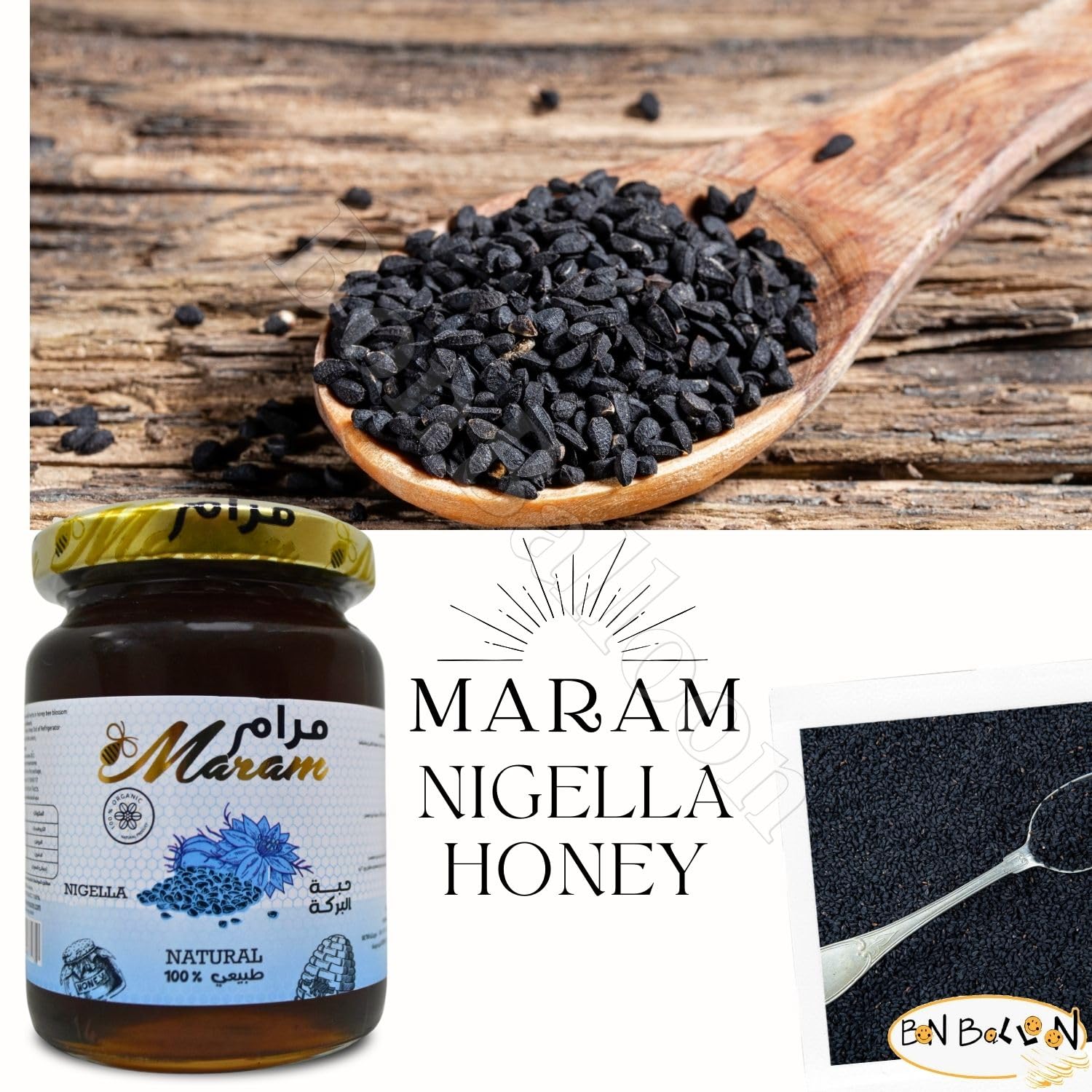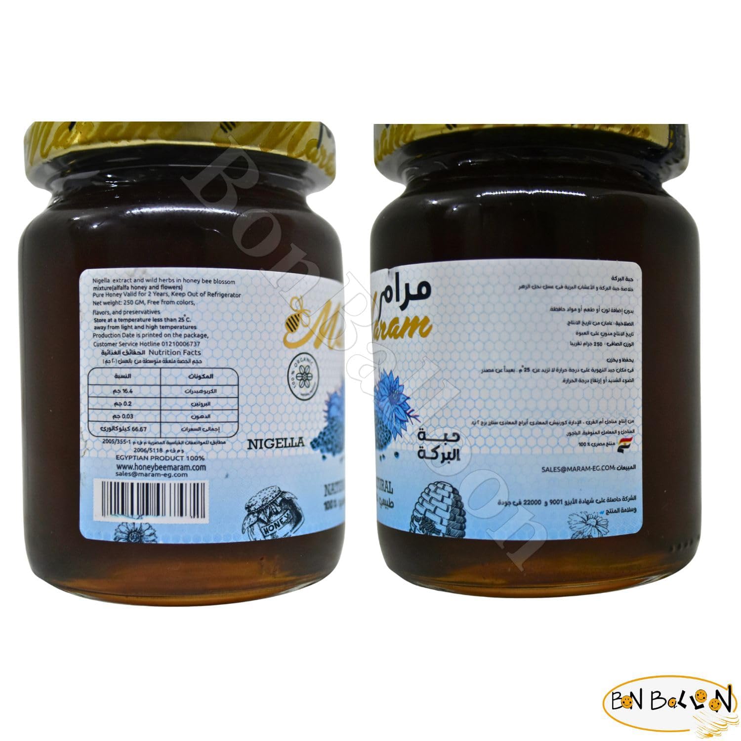 🍯 Organic Honey Maram With Black Seed Nigella Extract Natural Bee Honey Egyptian Pure Fresh Syrup Premium Egypt Arab Free From Colors Flavors And Preservatives Kosher Halal ( 1 Pack = 8.82 oz / 250 gm ) عسل بخلاصة حبة البركة حلال مرام