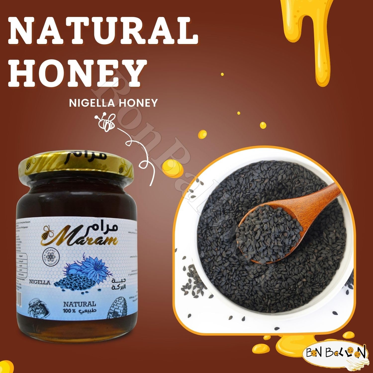 🍯 Maram Black Seed Honey Perfect For Your Favorite Recipes – Adds Color And Sweetness . Ideal In Cookies , Muffins , Pies , Cakes Baking , Brewing .
