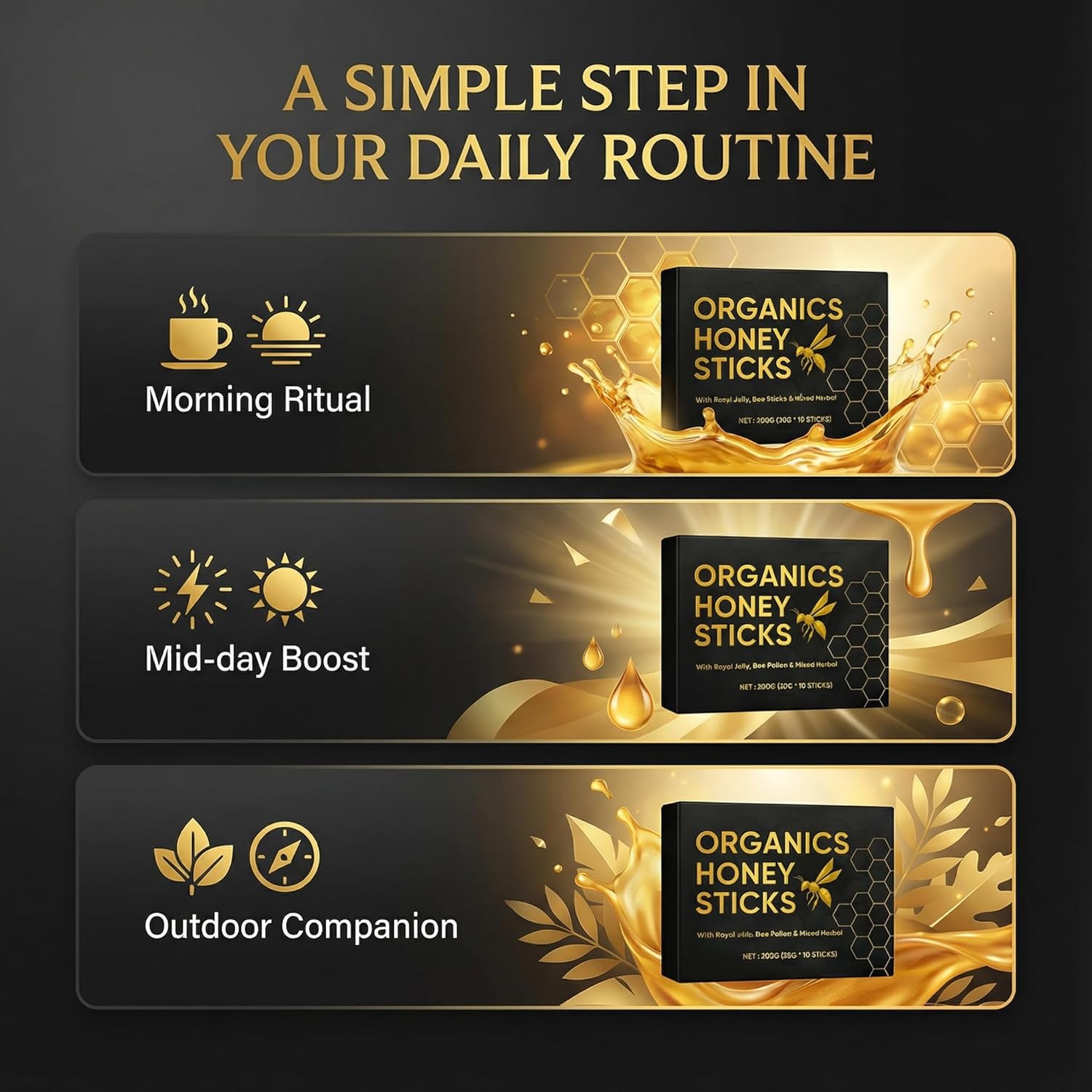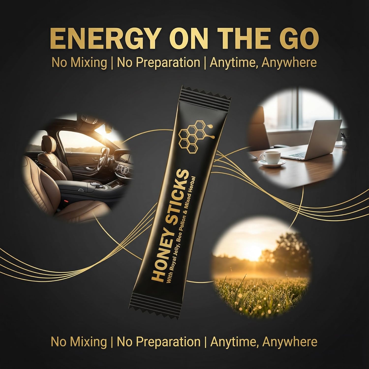 【Natural Energy from the Hive】: Each honey stick combines the natural goodness of royal jelly, bee pollen, and select herbal extracts. These hive-sourced ingredients are intended to provide daily vitality to help support energy levels and maintain a sense of readiness for your busy day