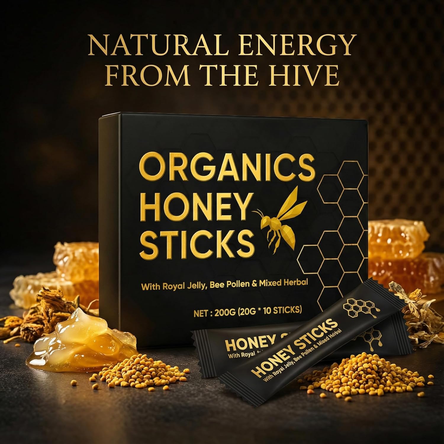 【Portable Packets of Concentrated Goodness】: Our travel-size sachets deliver a concentrated source of royal jelly, bee pollen, and herbal extracts in every stick. Enjoy the pure, natural taste straight from the packet anytime, anywhere—no mixing required. Perfect for life on the go