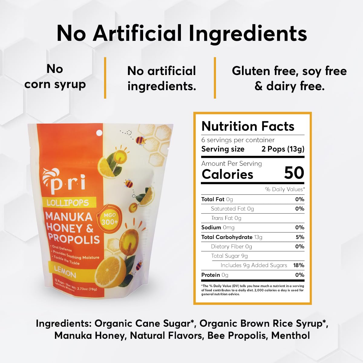 CLEAN‑LABEL INGREDIENTS: Made with organic raw sugar and organic brown rice syrup. No artificial flavors, no artificial sweeteners, and no high fructose corn syrup. Naturally flavored with lemon oil. Gluten free, soy free, and dairy free.