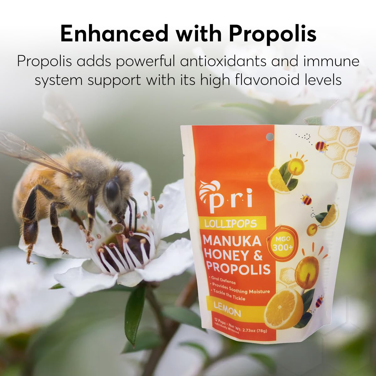 CERTIFIED MGO 300+ MANUKA HONEY: Each pop features independently certified MGO 300+ Manuka honey sourced from sustainable New Zealand beekeepers. A premium ingredient known for its unique, naturally occurring properties.