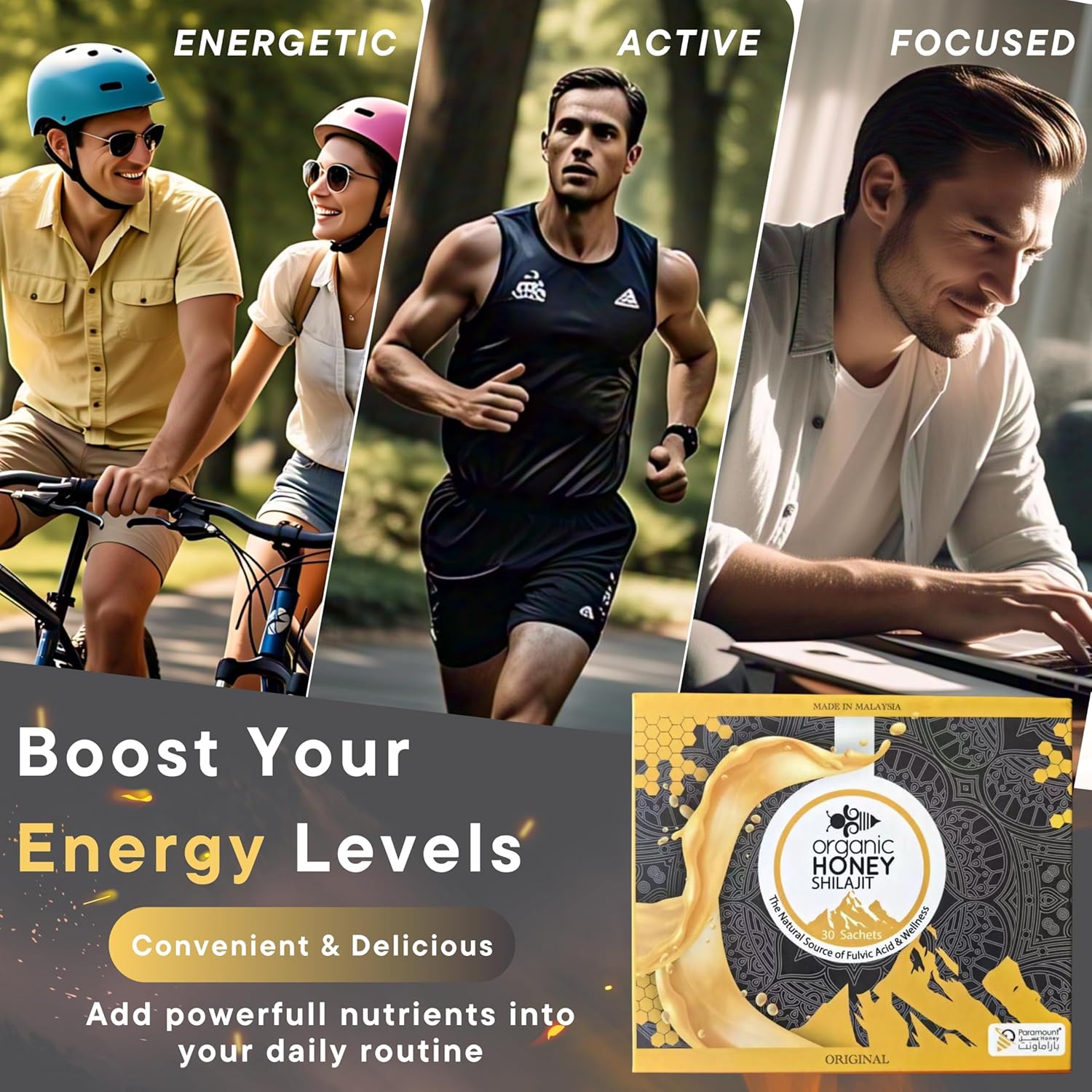 Premium Ingredients We use only high-quality, lab-tested ingredients — from organic honey and Himalayan Shilajit to powerful herbs like Royal Jelly and Panax Ginseng.Traditionally Inspired Formula Rooted in ancient wellness traditions, this blend is crafted to support stamina, focus, and daily vitality.Convenient Daily Sachets Each box contains 30 ready-to-use sachets — easy to carry and perfect for a month-long wellness routine.Naturally Enhancing Your Lifestyle Designed to help you stay energized, active, and balanced — promoting overall wellness and performance, both mentally and physically.