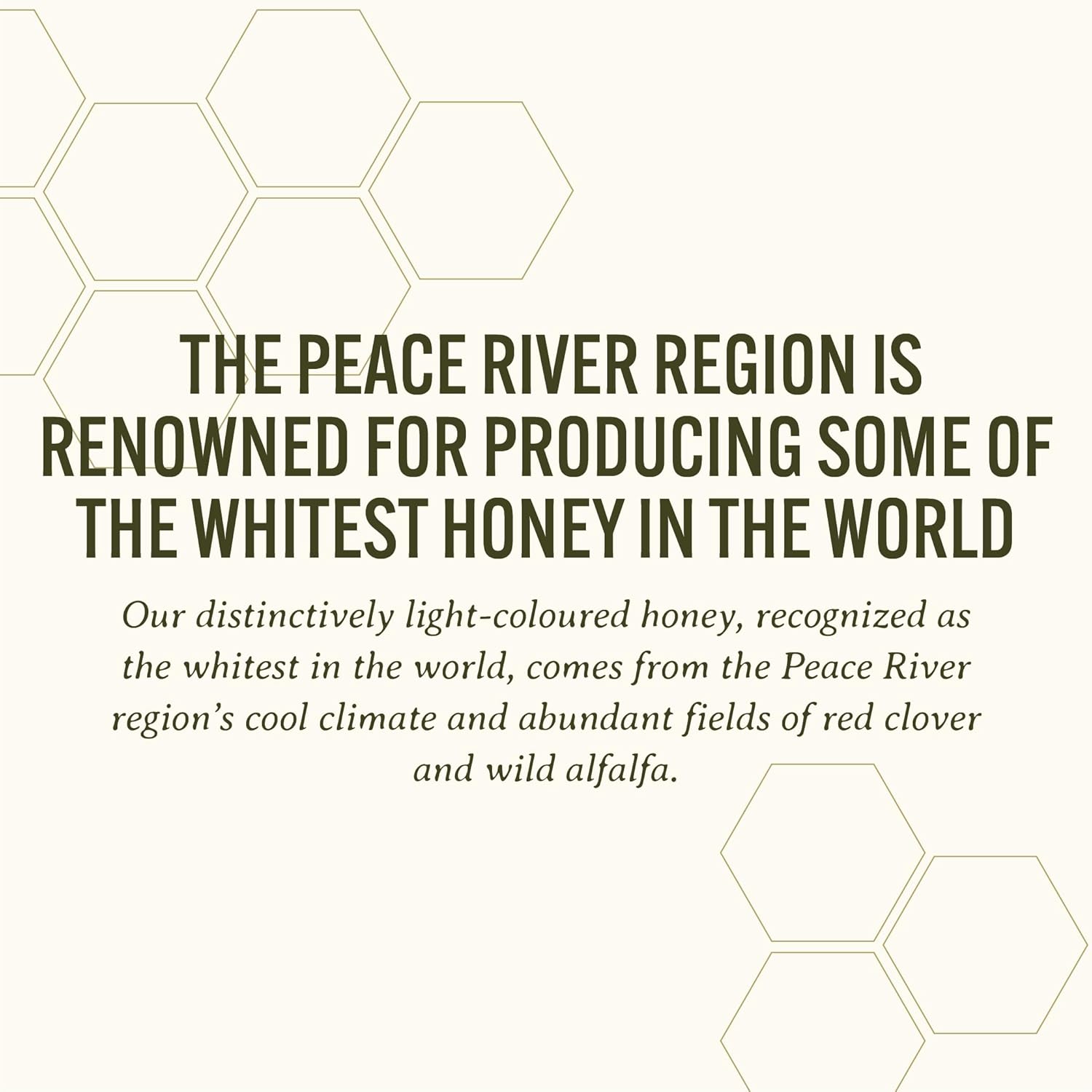 [SUSTAINABLY SOURCED]: Harvested in Western Canada and parts of Brazil, our honey is thoughtfully processed and packaged in Peace River. Our white honey comes from pristine beekeeping that focuses on purity and quality. It is ethically produced using sustainable practices that support bee health and biodiversity.