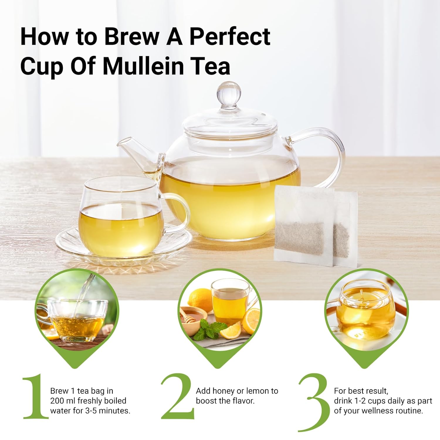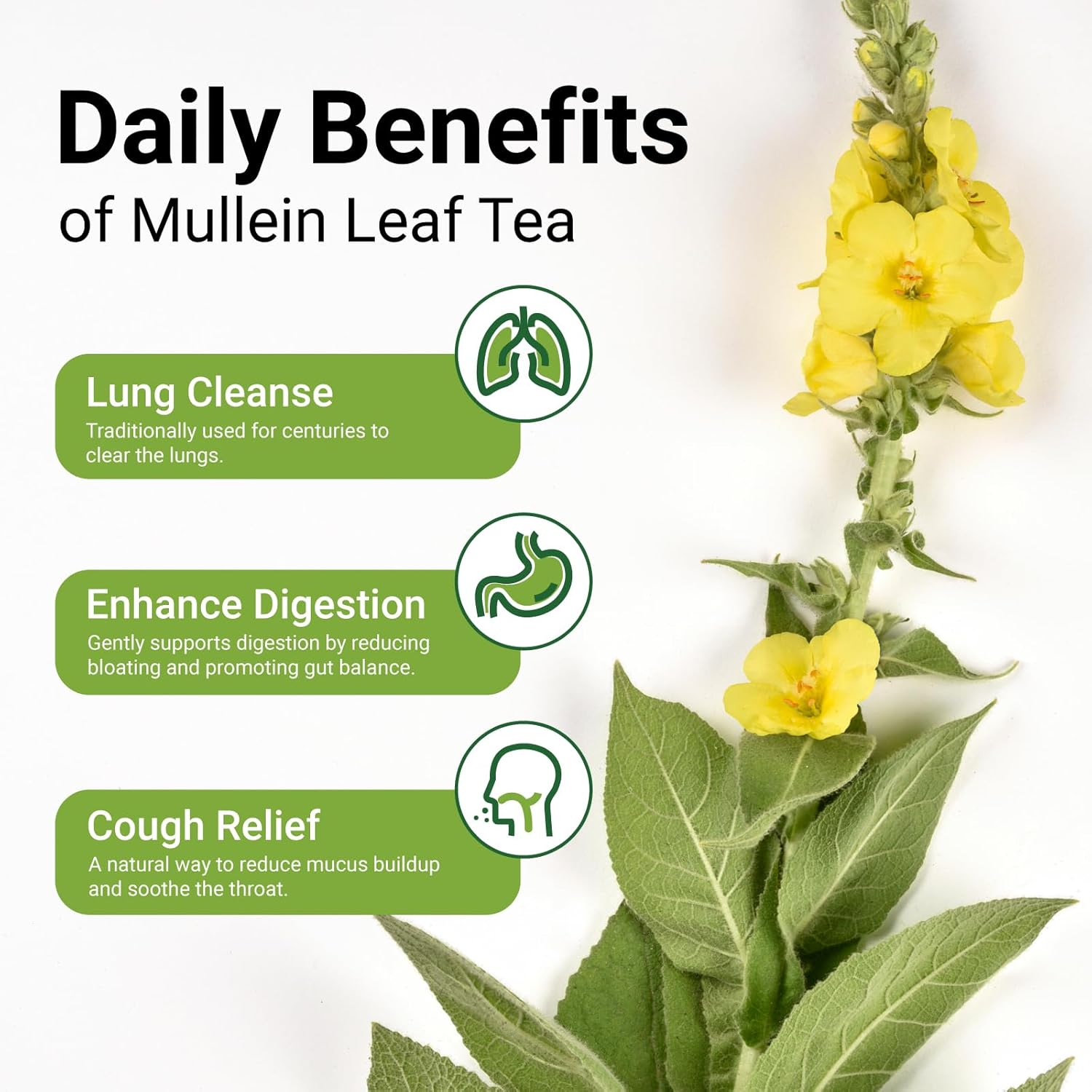 100% Mullein Leaf – No Additives: Our mullein tea is made from 100% pure mullein leaf with no fillers, and no flavorings. Just clean, authentic herbs processed through a minimal, additive-free method to maintain full herbal value.
