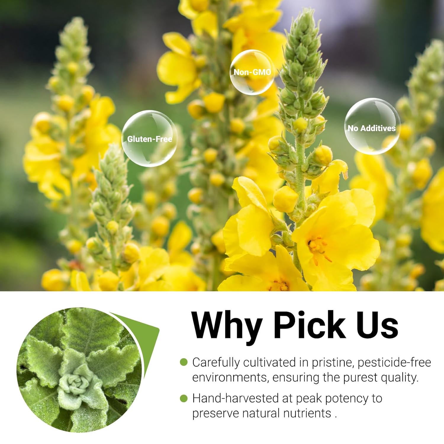 Grown in Clean, Untouched Fields: Sourced from pollution-free growing areas, our mullein leaves are cultivated without pesticides or harmful chemicals. Every batch is carefully processed to preserve its natural integrity.