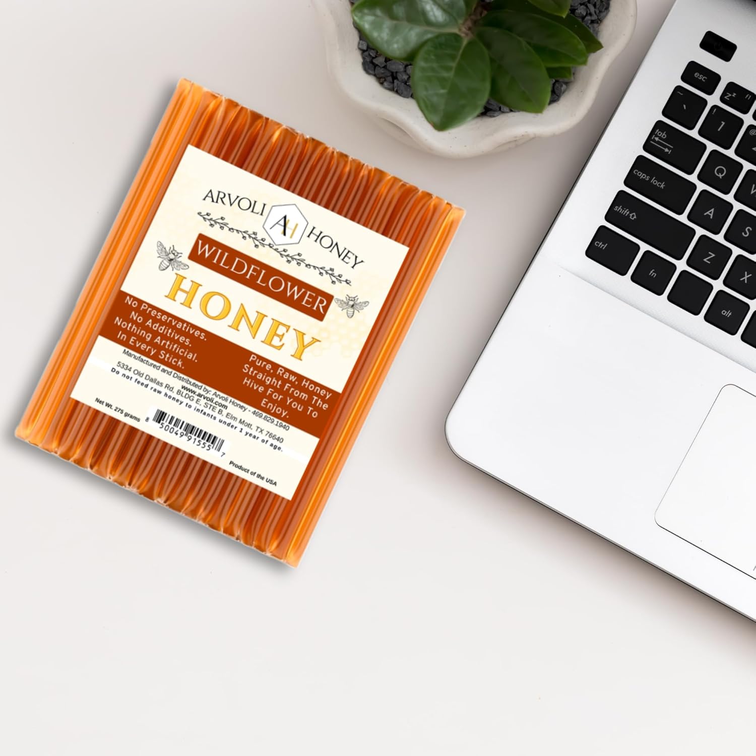 Arvoli Honey’s Premium, Raw, and ethically sourced Honey packed into a portable stick! ONE simple ingredient: Raw Honey! No GMOs, no preservatives, no additives, just liquid gold from the honey bees.