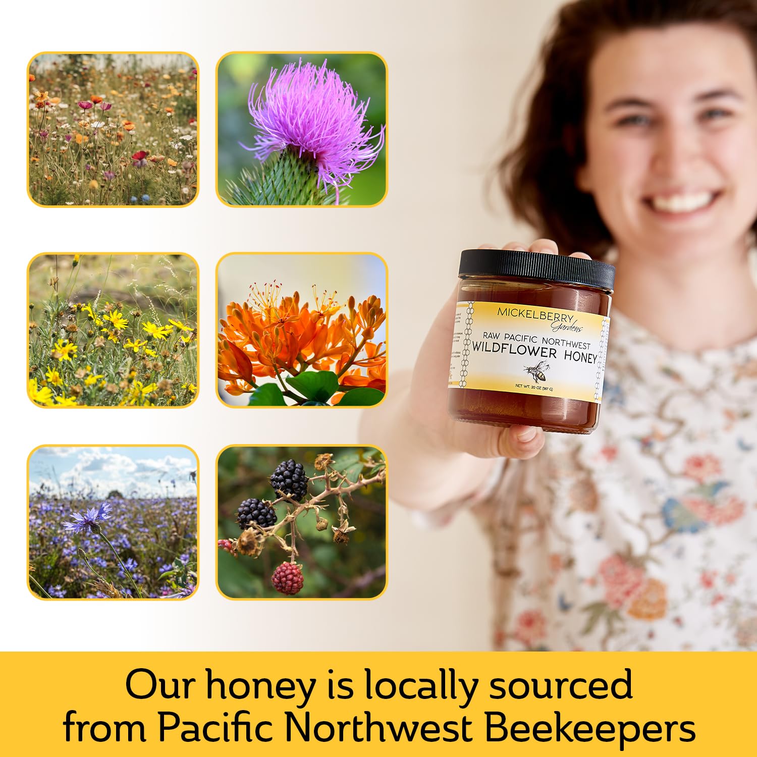 All of our Mickelberry Gardens raw honey is locally-sourced directly from beekeepers we trust right here in the Pacific Northwest.