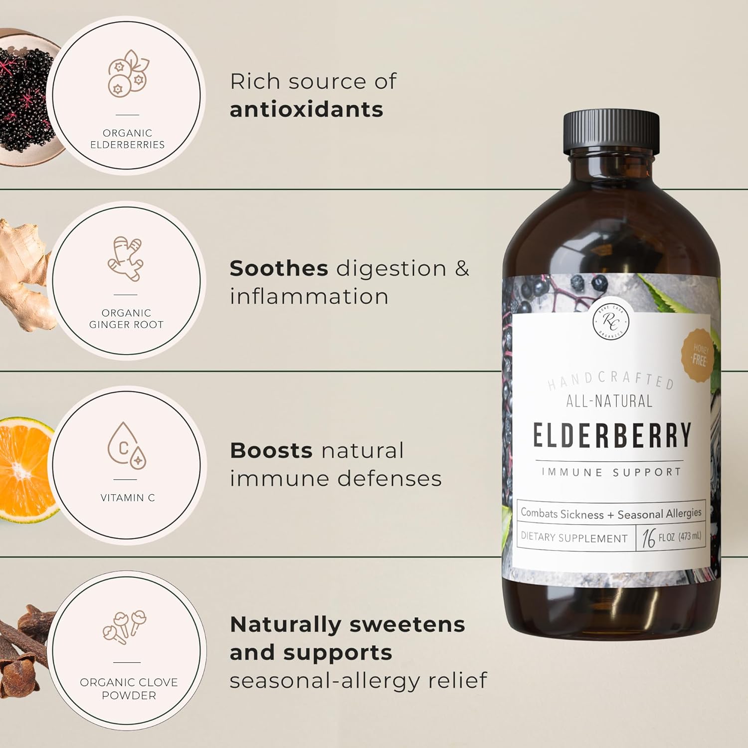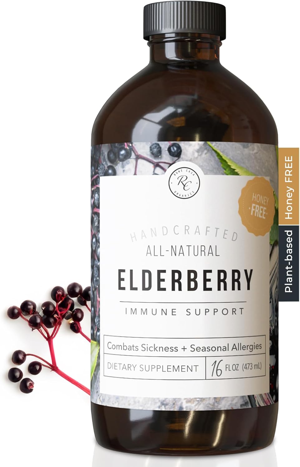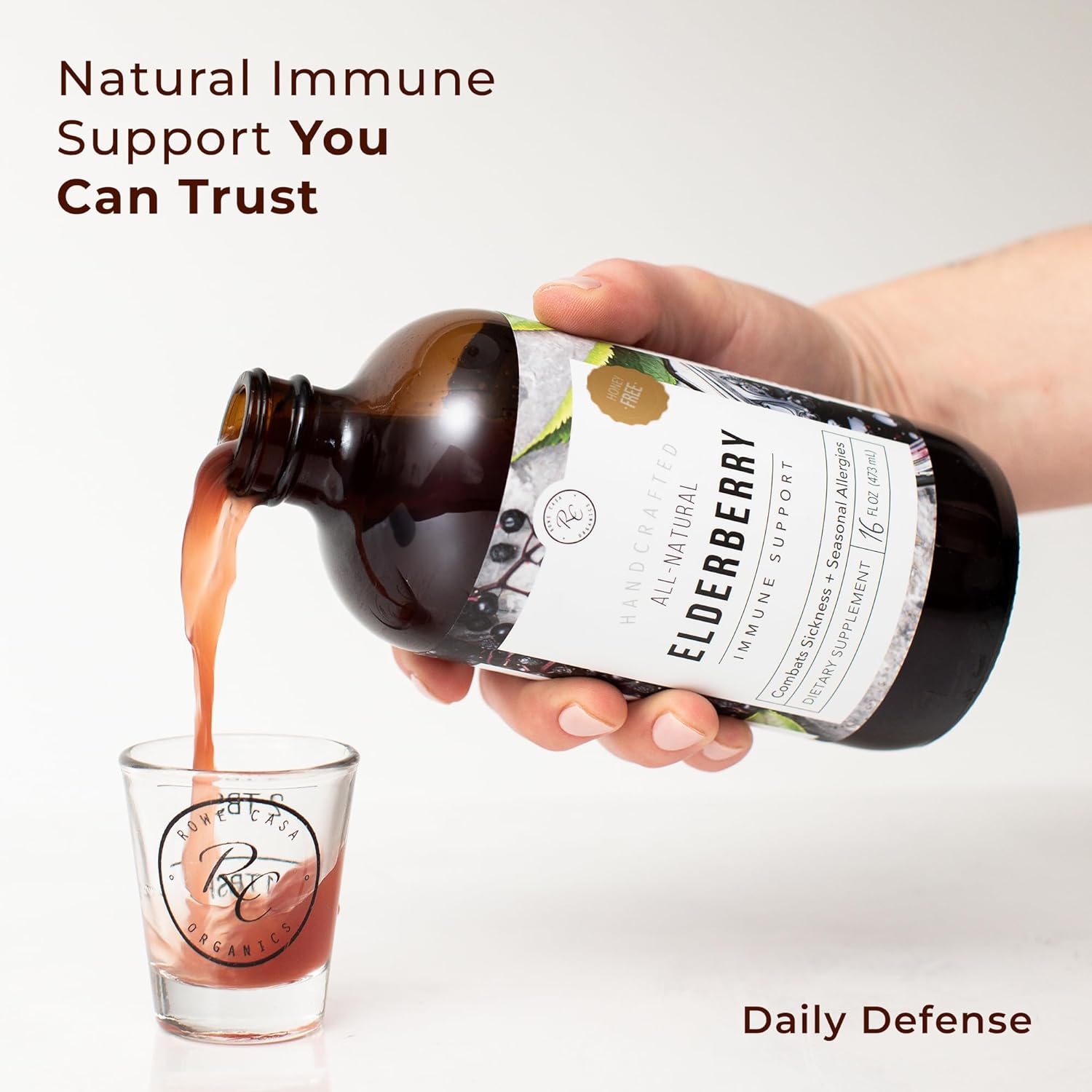 “Rowe Casa Organics Elderberry Immune Support – Natural Elderberry Syrup with Antioxidants, Zinc, and Vitamin C (16 Fl Oz) Rowe Casa Organics Elderberry Immune Support is a natural elderberry syrup for adults and children, made from premium organic black elderberries. Packed with antioxidants, this syrup helps support a healthy immune system and overall wellness. Elderberries are the second-highest antioxidant fruit, helping to protect cells and boost immunity. This powerful formula is enhanced with Vitamin C and Zinc for added immune-boosting support. Made with non-GMO, gluten-free, and natural ingredients, it’s safe for both adults and children. The delicious, berry-rich flavor makes it a favorite for the whole family, including toddler elderberry syrup for children aged 1 and up. For daily use, adults should take 1-2 servings, while toddlers (1+) can take half a serving. For extra support, take every 2-3 hours at the onset of symptoms. After opening, refrigerate and use within 2-3 months. With its potent formula, natural ingredients, and great taste, Rowe Casa Organics Elderberry Immune Support is the perfect addition to your family’s wellness routine. Children under 1 should not ingest honey. Opt for our honey free version.”
