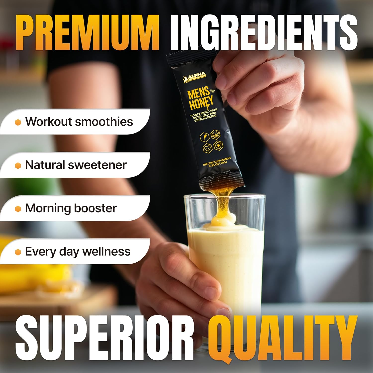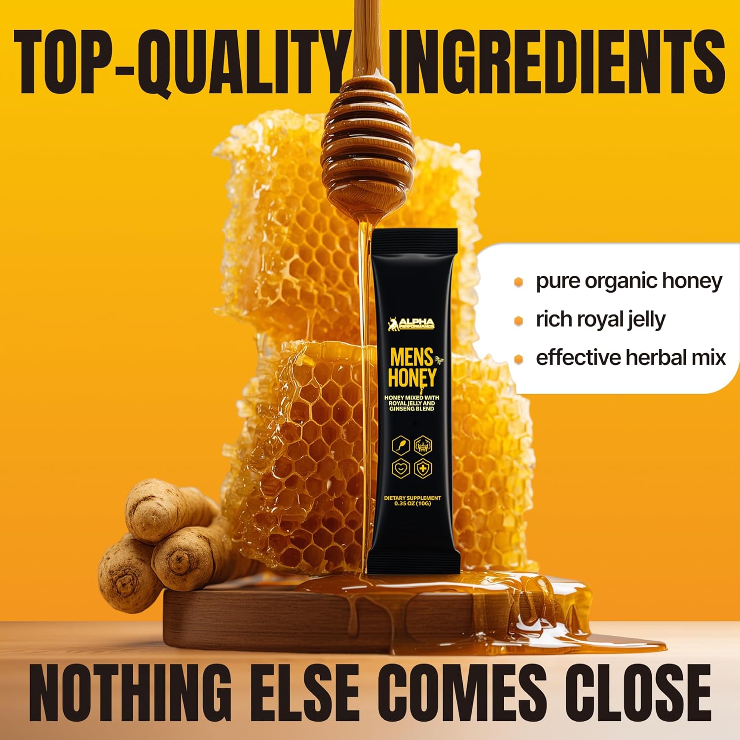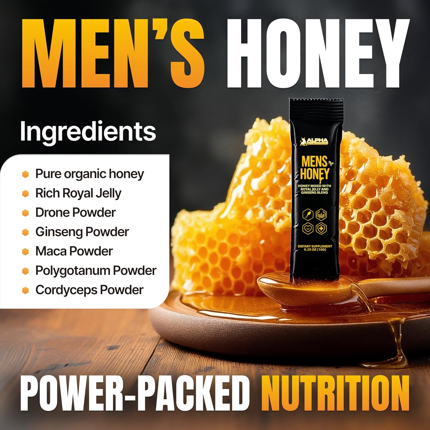 Harness A Natural Energy Source – Raise your energy levels naturally with organic honey for men. Each honey pack contains a potent herbal mix designed to keep you going throughout the day.