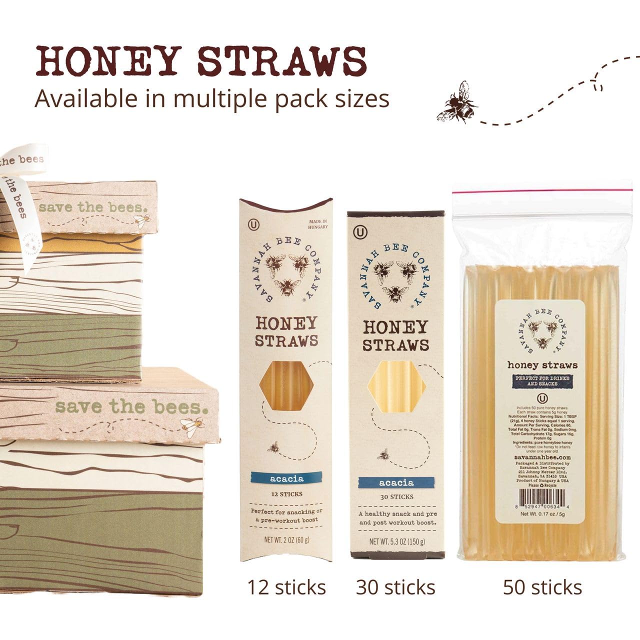 Savannah Bee Company Honey Straws -Pack of 50