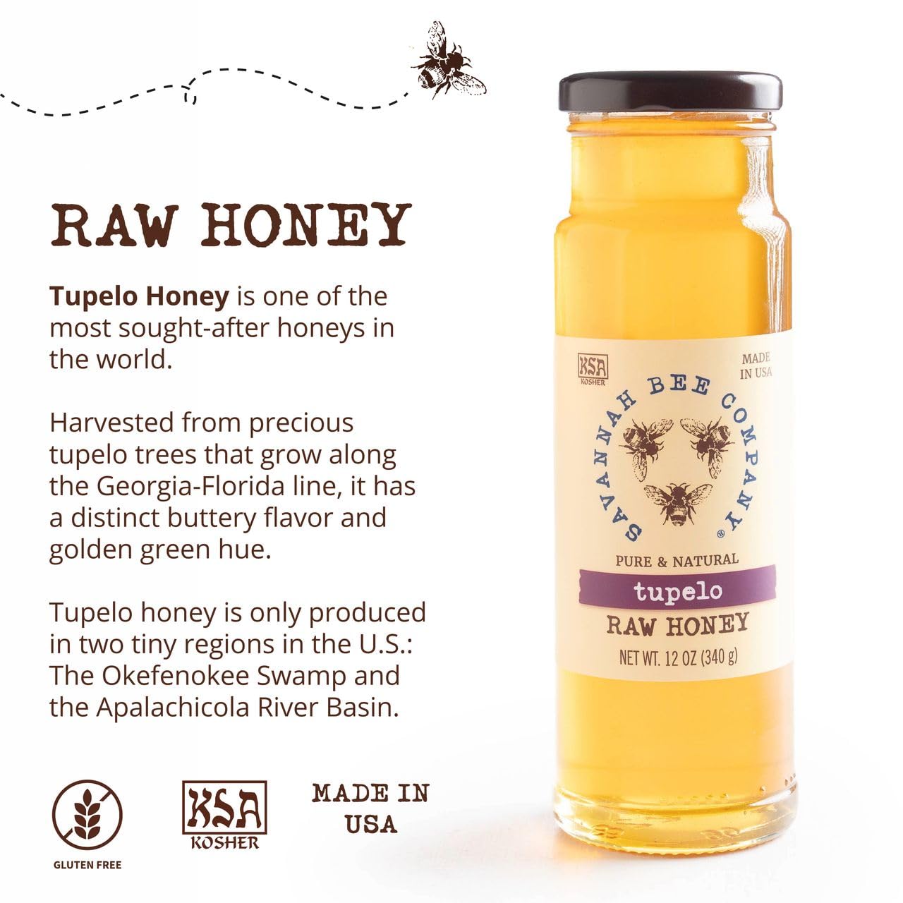 PREMIUM QUALITY – Our Tupelo honey is a monofloral honey made with at least 51% Tupelo nectar, often closer to 60-70%. While bees visit multiple flowers, this honey delivers a true Tupelo-forward taste harvested in Georgia.