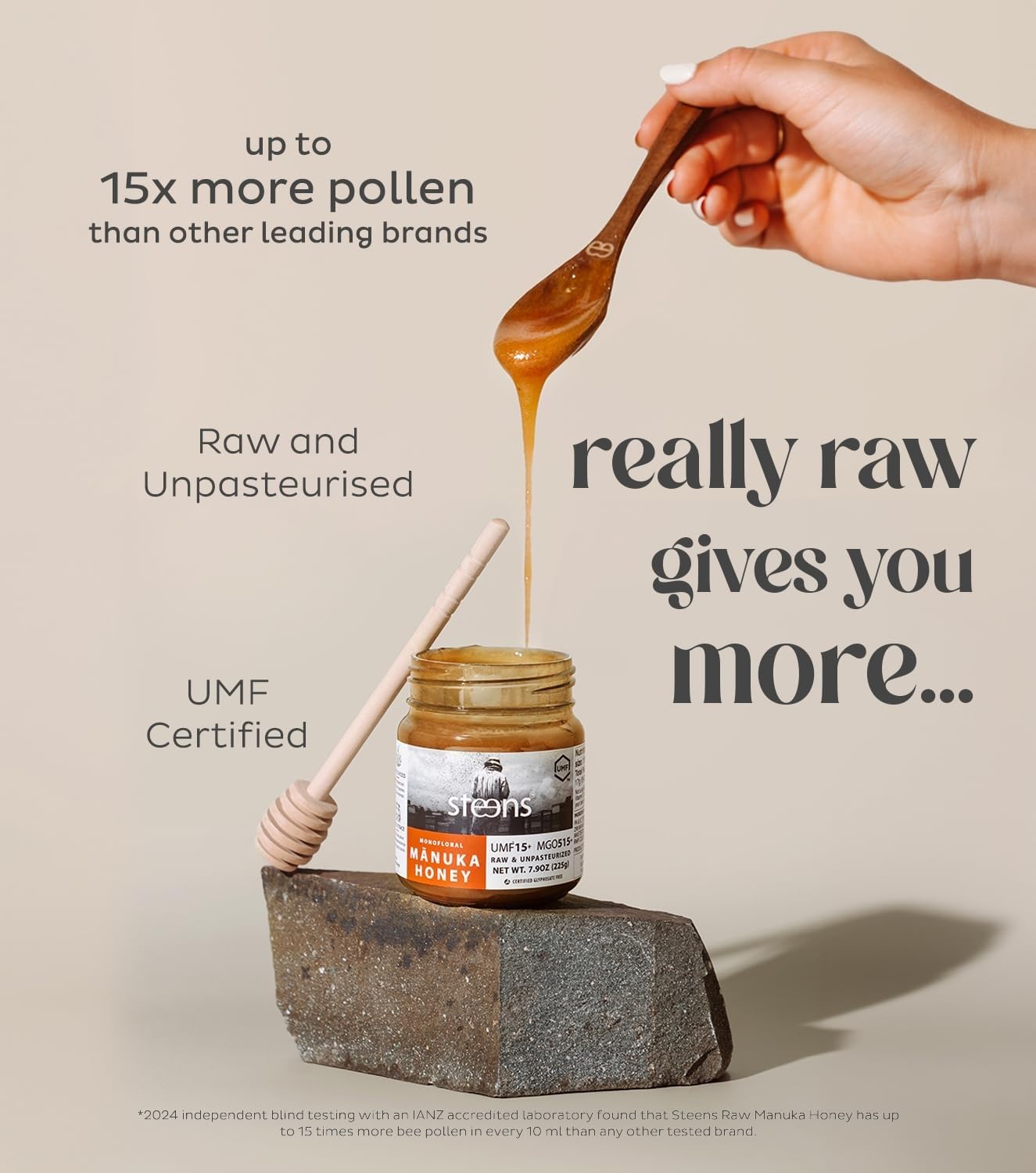 RICH IN NUTRIENTS – the nutrient-rich bee pollen components make Steens Manuka Honey a healthy superfood that actively supports your body.