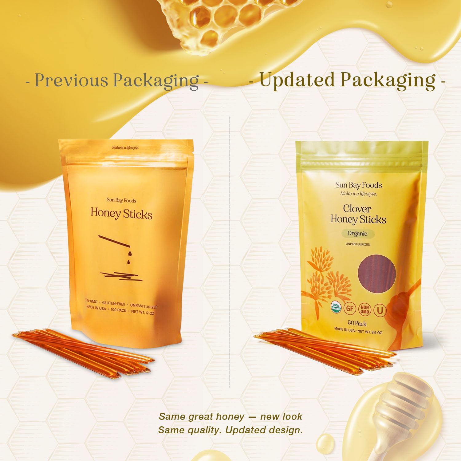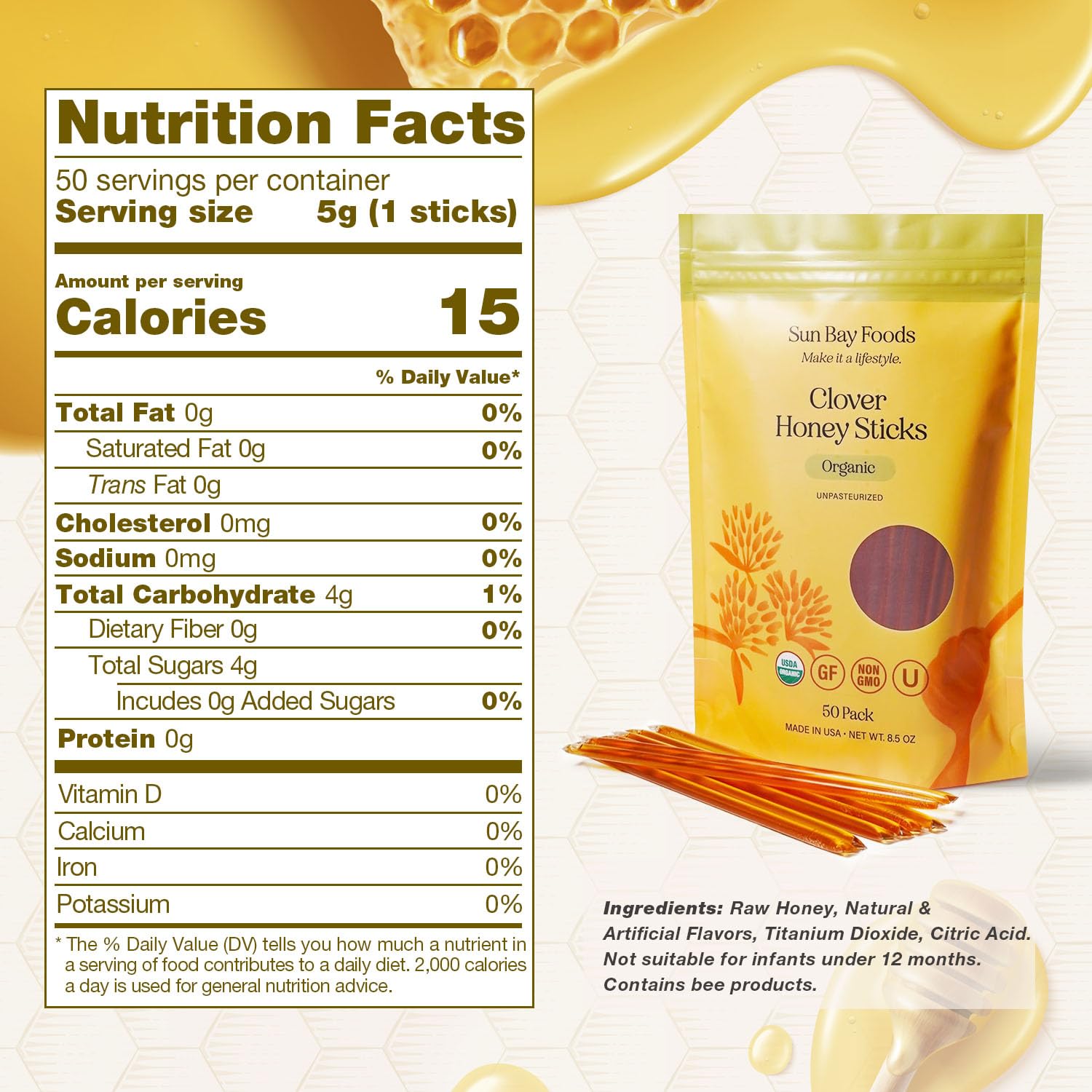 Sunbay Foods Organic Honey Sticks are made from 100% pure raw clover honey.