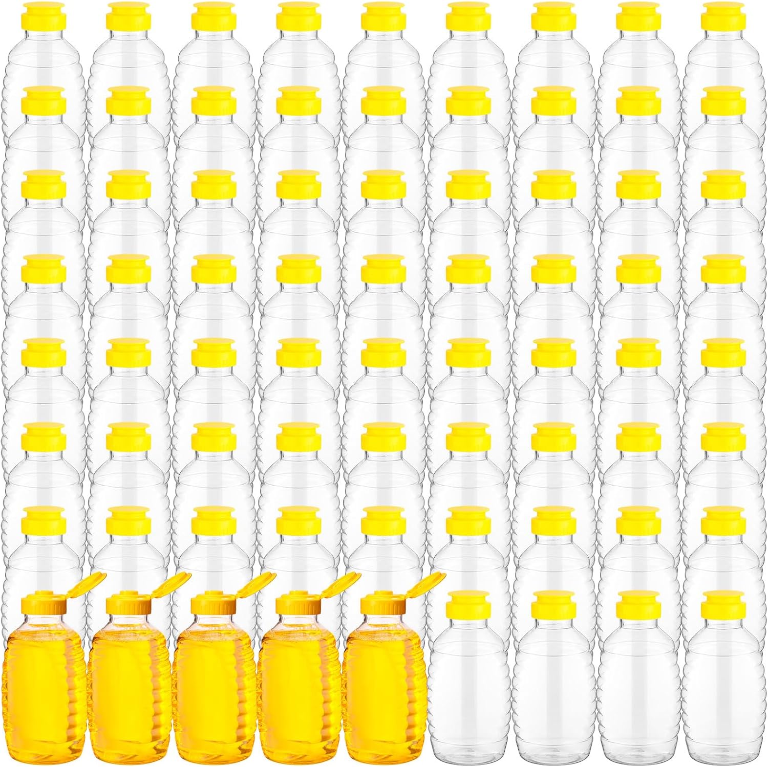 Plastic Honey Bottles Set: the package includes 72 pieces of clear plastic honey containers, ample quantity is ideal for homes or stores with large quantities of honey or syrup to dispense and store, for home or commercial use