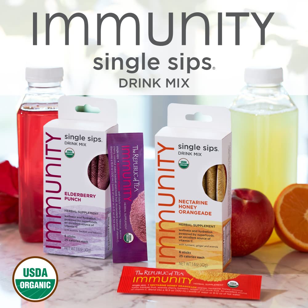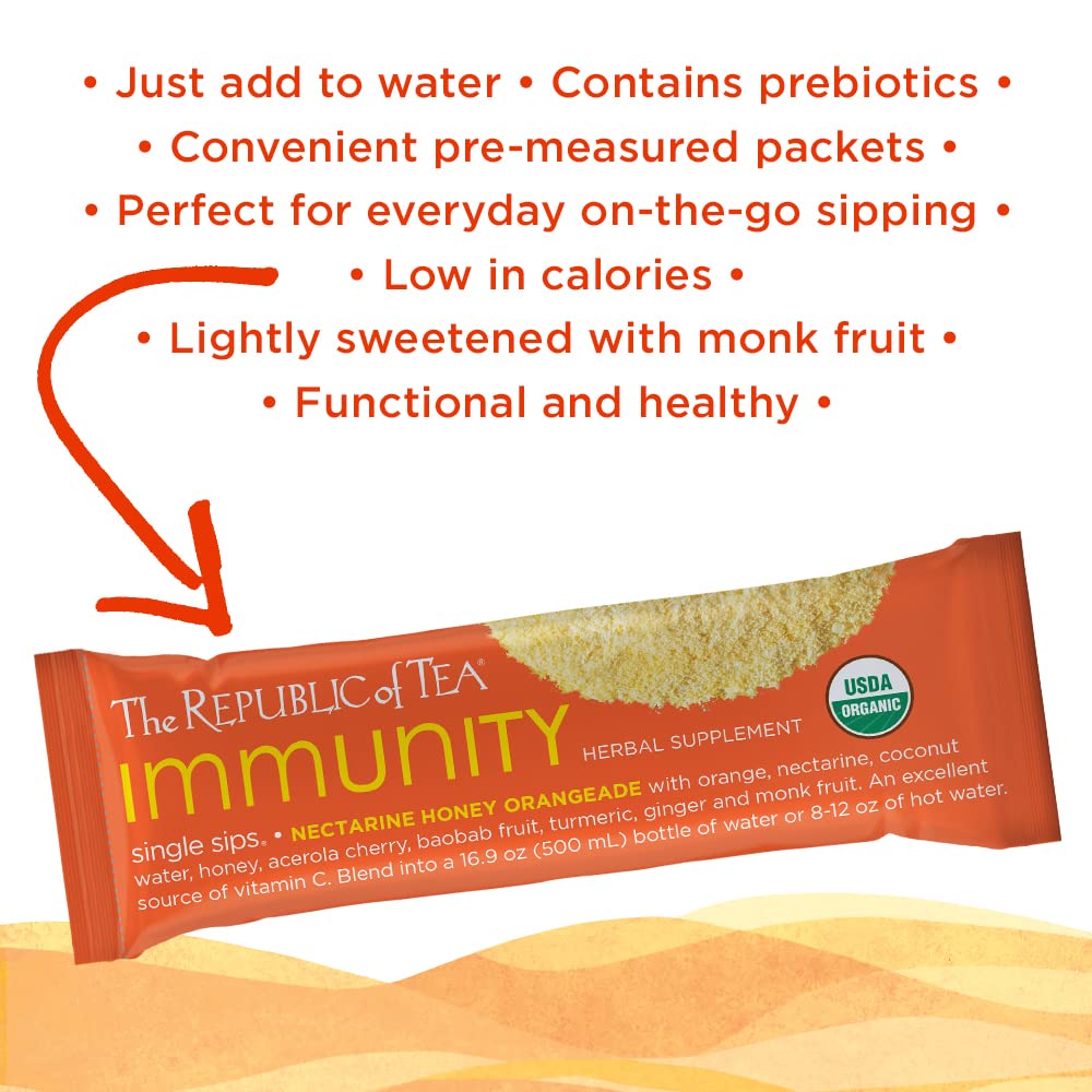 Be the first to review “The Republic of Tea – Immunity Nectarine Honey Orangeade Single Sips, 6 Drink Mix Packets”