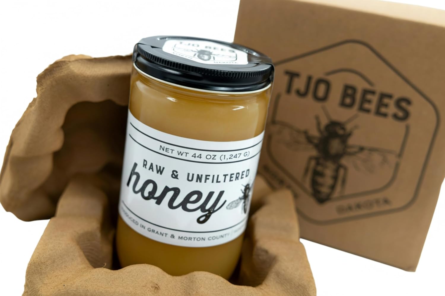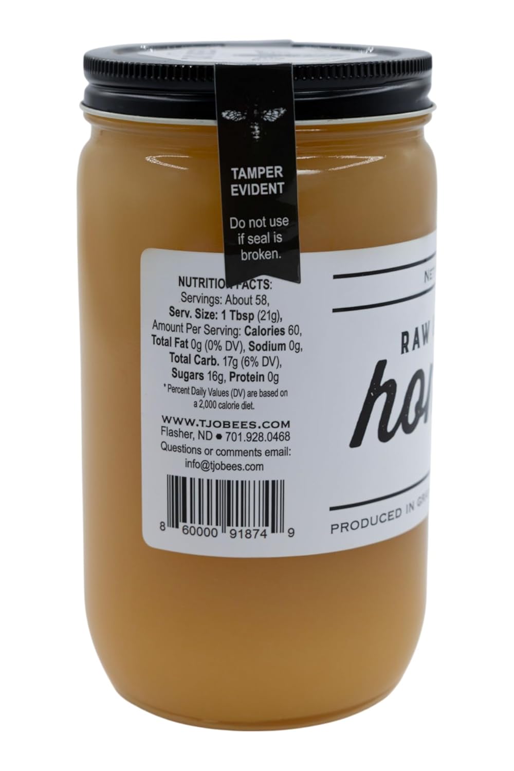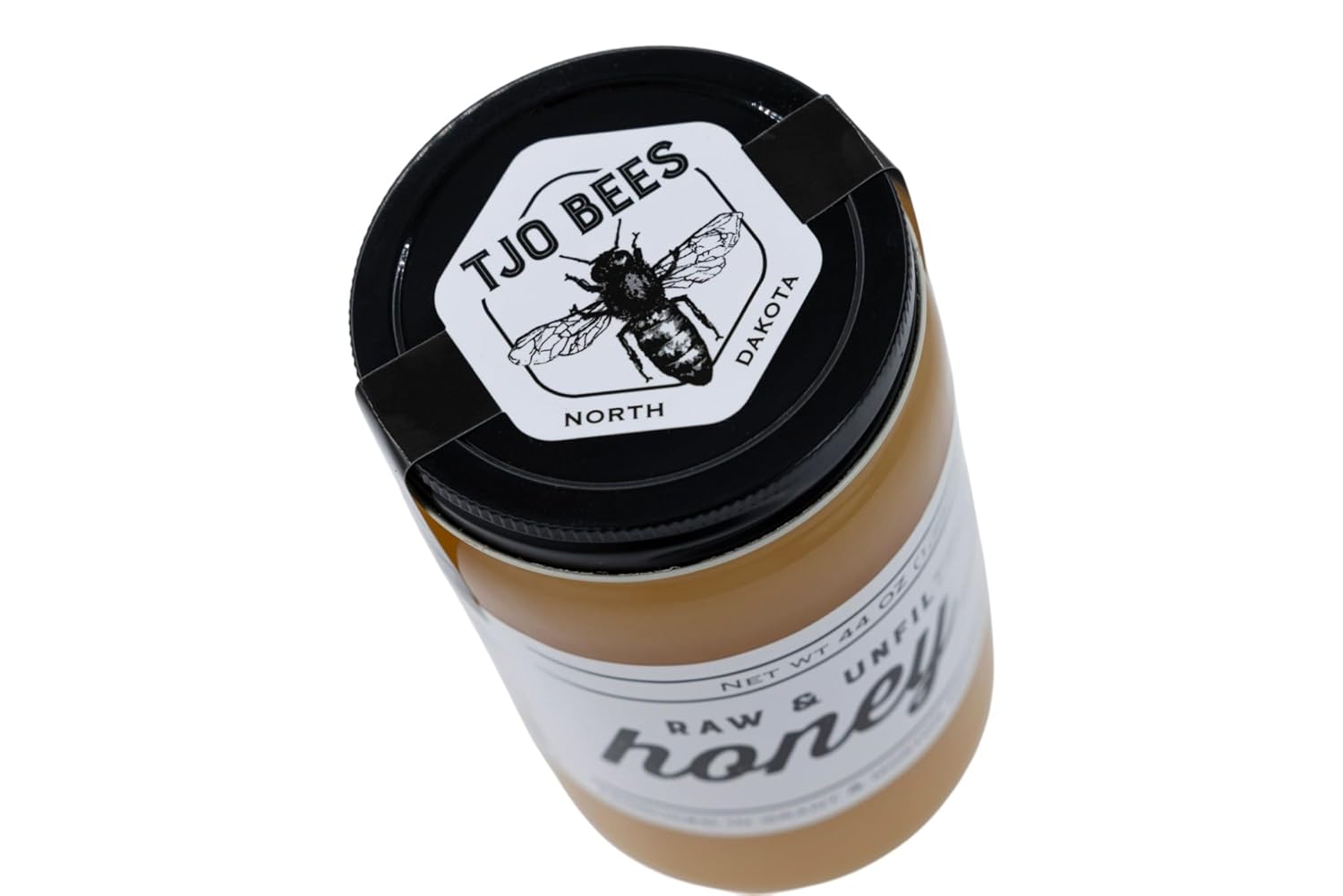TJO Bees Raw and Unfiltered Honey, 44 OZ Glass Jar