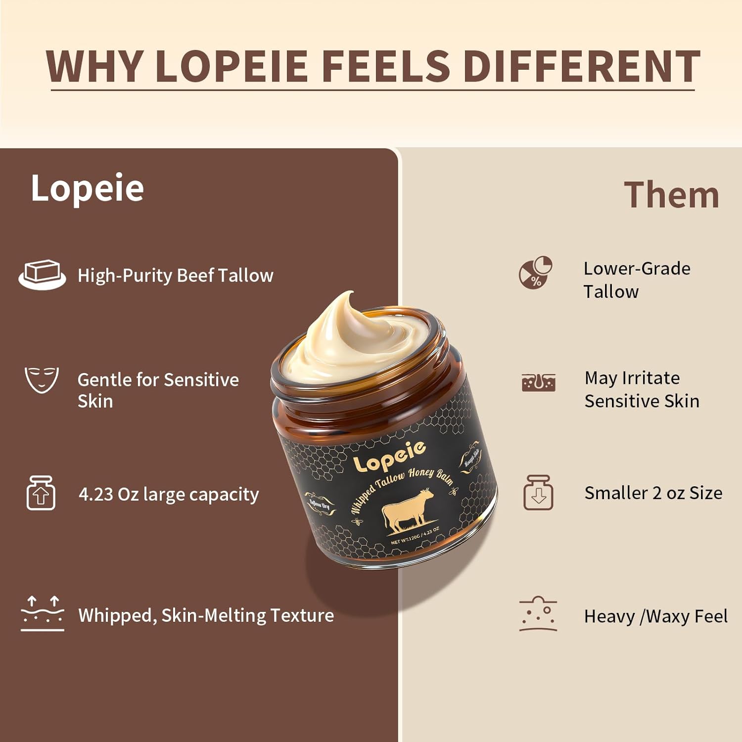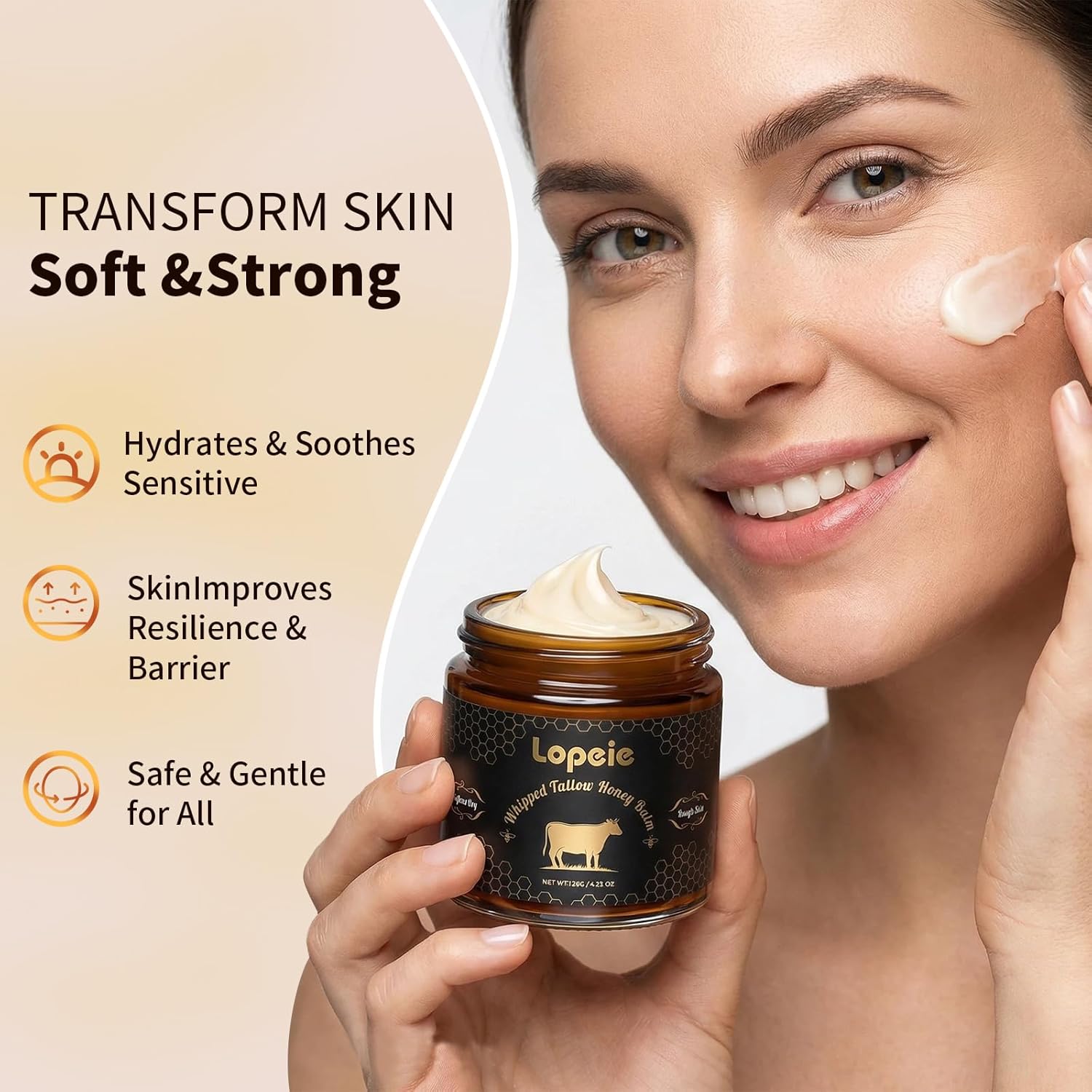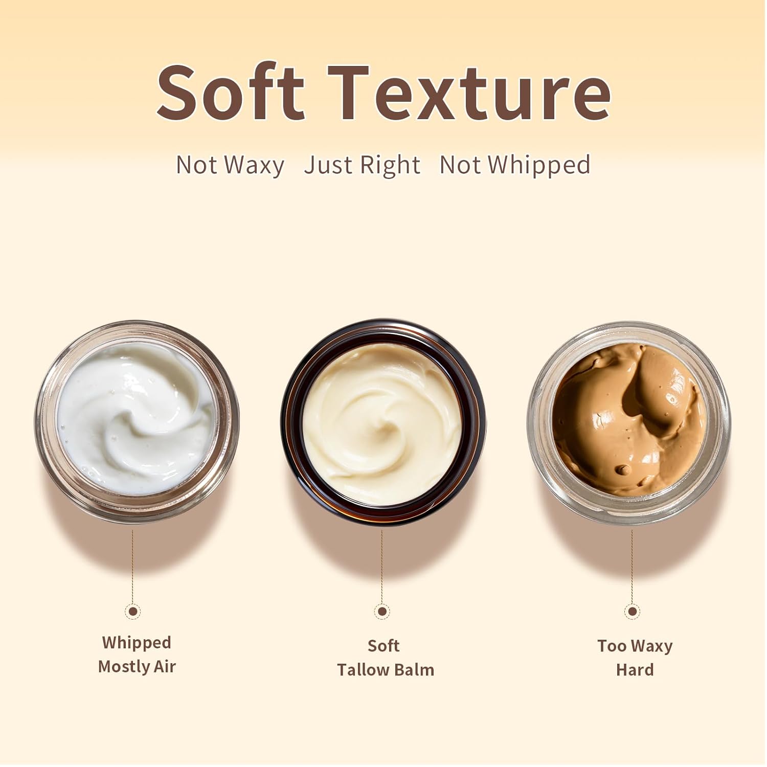 【Non-Greasy, Fast-Absorbing Whipped Texture】 Experience our unique whipped tallow balm texture that melts effortlessly into skin without greasy residue. It absorbs quickly, delivering immediate nourishment and leaving your skin feeling exceptionally soft and smooth.