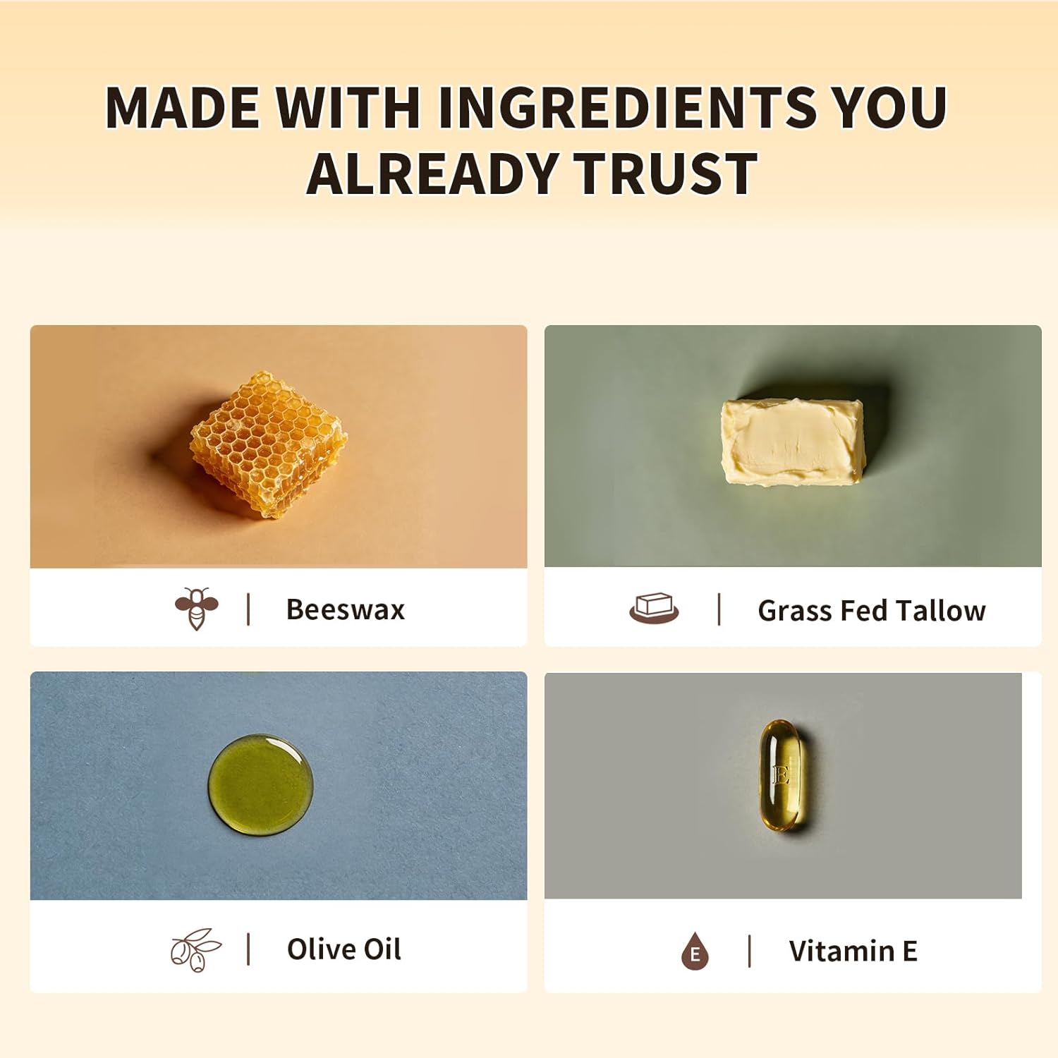 【Intense Moisture & Barrier Support with Vitamin E】 Fortified with Tocopherol (Vitamin E), this intensive tallow and honey balm and body balm helps reinforce the skin’s natural barrier. It locks in intense hydration, promoting stronger, more resilient skin health over time.