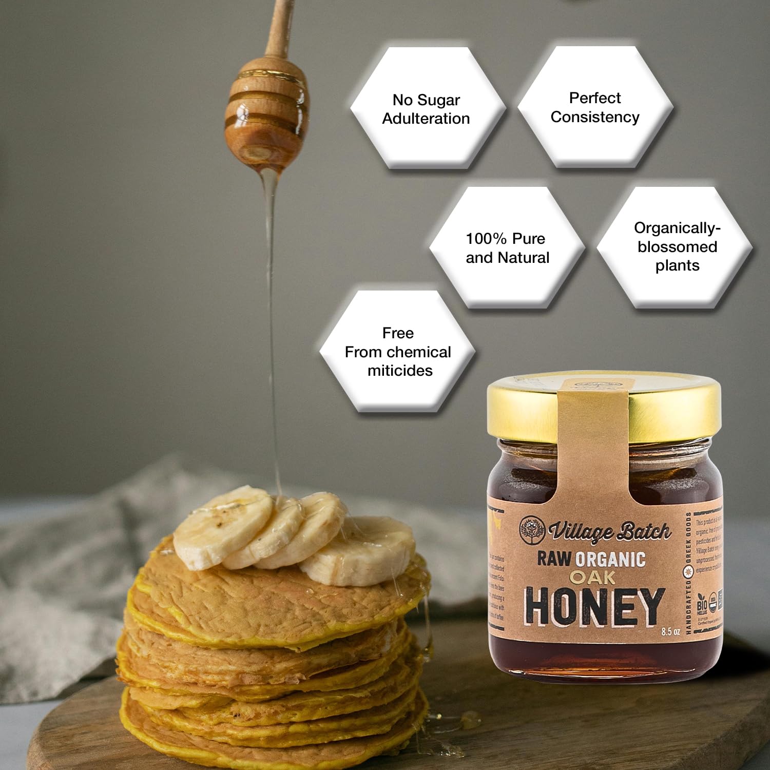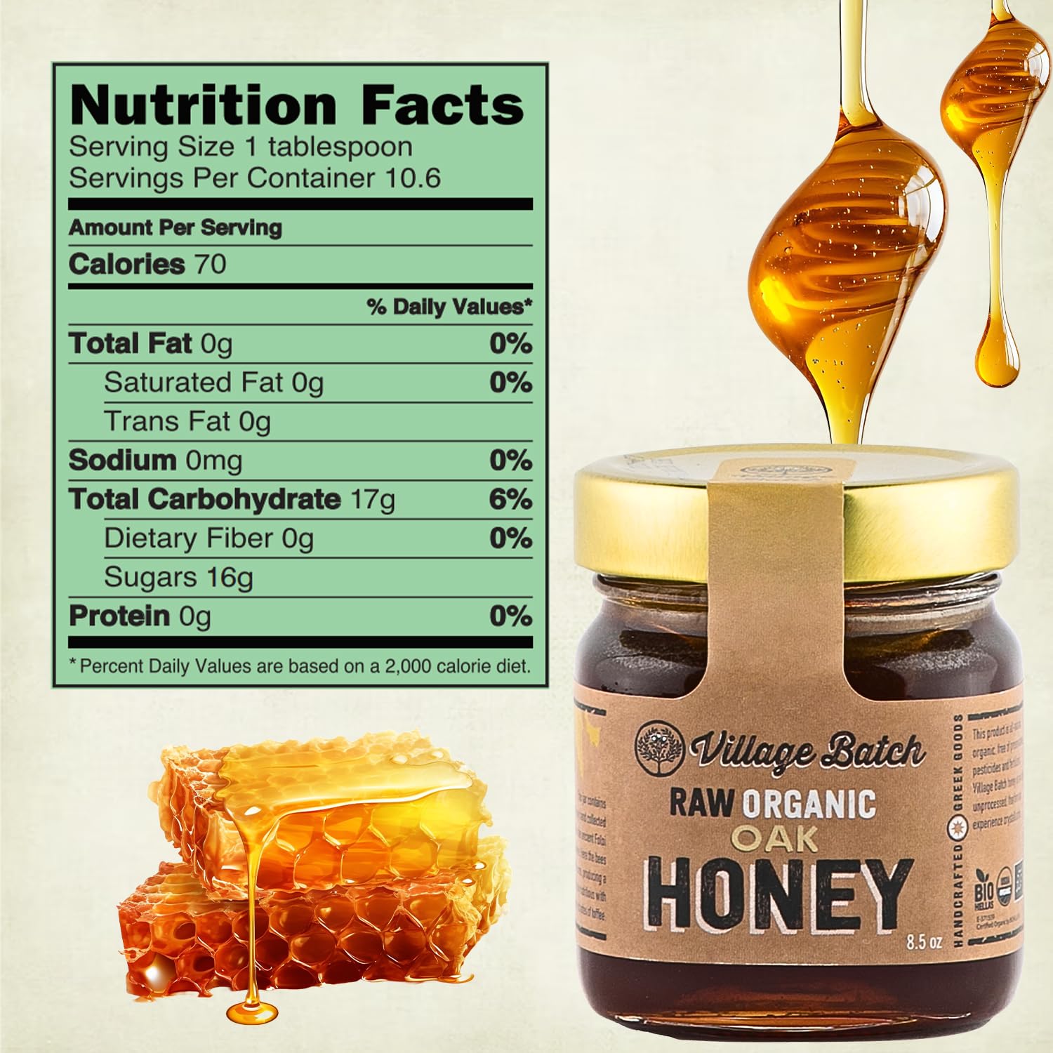 Be the first to review “Village Batch Raw Organic Oak Honey 8.5oz Jar (Pack of 1) from Foloi Oak Forest, Dark Amber, Rich Caramel and Toffee Notes, Unfiltered and Unpasteurized Greek-Honey”