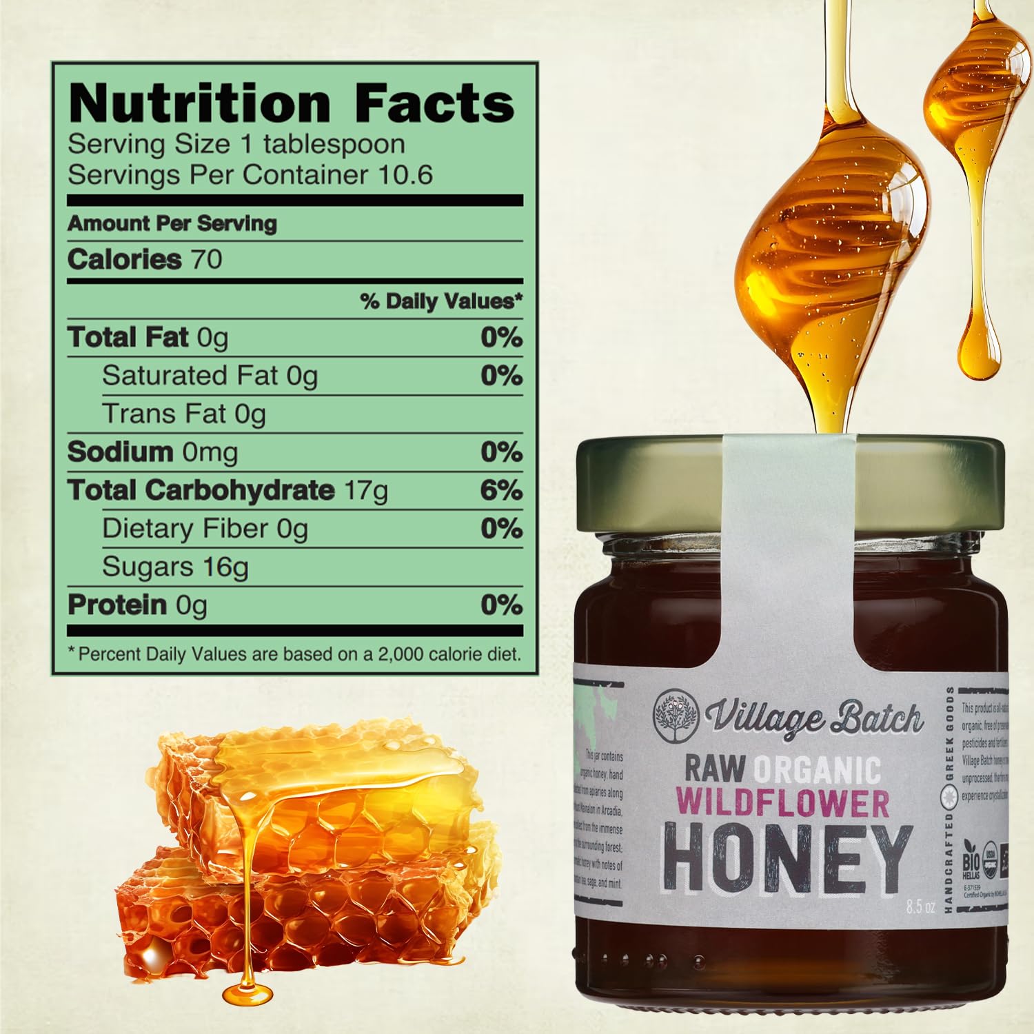 Be the first to review “Village Batch Raw Organic Wildflower Honey 8.5oz Jar Pure and Unfiltered Greek Honey from Mount Mainalon, Unheated & Unpasteurized for Full Flavor, Aromatic Notes of Mountain Tea, Sage & Mint”