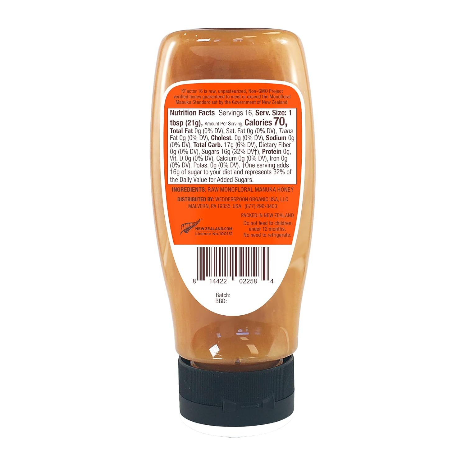 MONOFLORAL HONEY: Raw Manuka Honey is never pasteurized; Non-GMO Project verified Manuka Honey, traceable from hive to home; Enjoy one BPA free, non-leaching poly squeeze bottle filled with delicious KFactor 16 honey