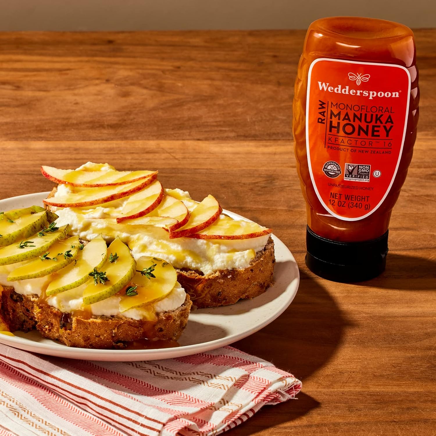 Be the first to review “Wedderspoon Raw Manuka Honey, Unpasteurized, Genuine New Zealand Honey, Multi-Functional, Non-GMO Superfood, Convenient Squeeze Bottle, KFactor 16, 12 Ounce”