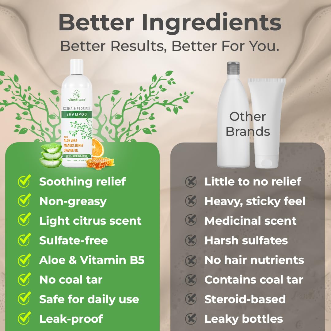 EXPERIENCE THE DIFFERENCE with our dandruff shampoo for psoriasis & eczema. Cruelty-free & hypoallergenic–safe for kids & babies. Our commitment to your satisfaction is unwavering—if for any reason you are not completely satisfied with Wild Naturals Eczema & Psoriasis Dermatitis Shampoo, just let us know & we will happily issue a refund.